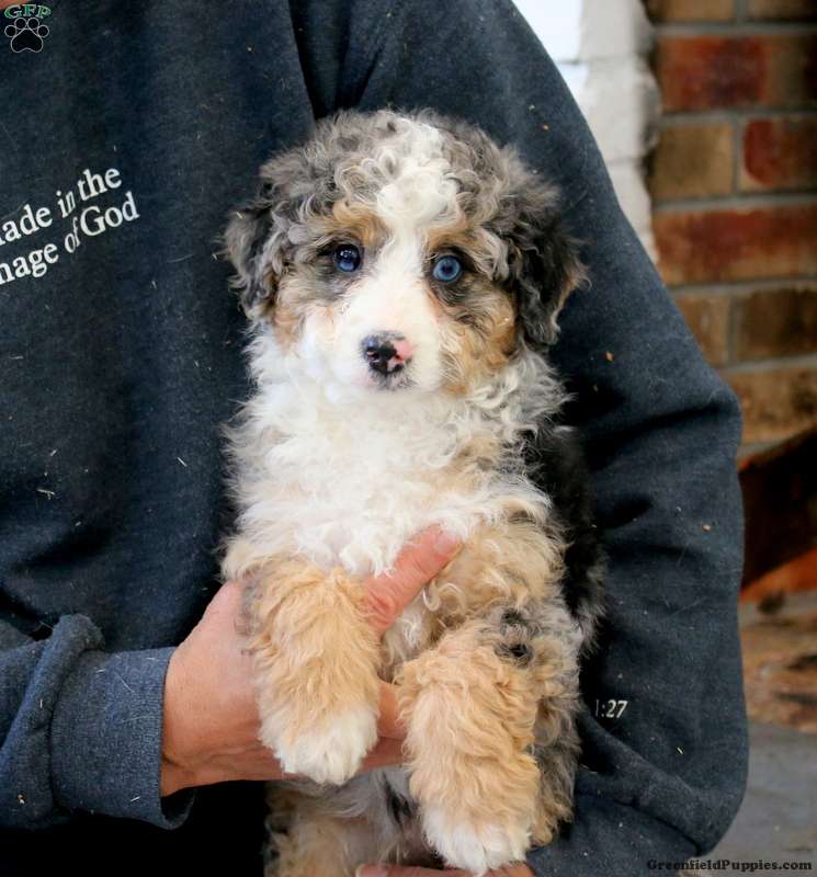 Kane is a beautiful Miniature Bernedoodle puppy who is well socialized and ready to meet you! This sweet and expressive pup comes home with a 30 day health guarantee and an extended genetic health guarantee, both provided by the breeder. Kane has been seen by a vet and is up to date on shots and de-wormer. This cutie-pie will be your favorite sidekick!