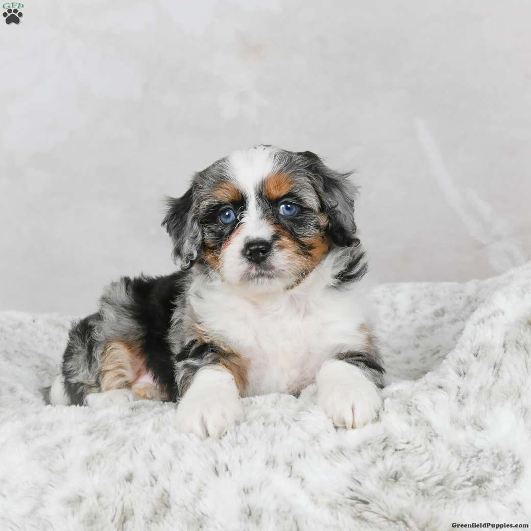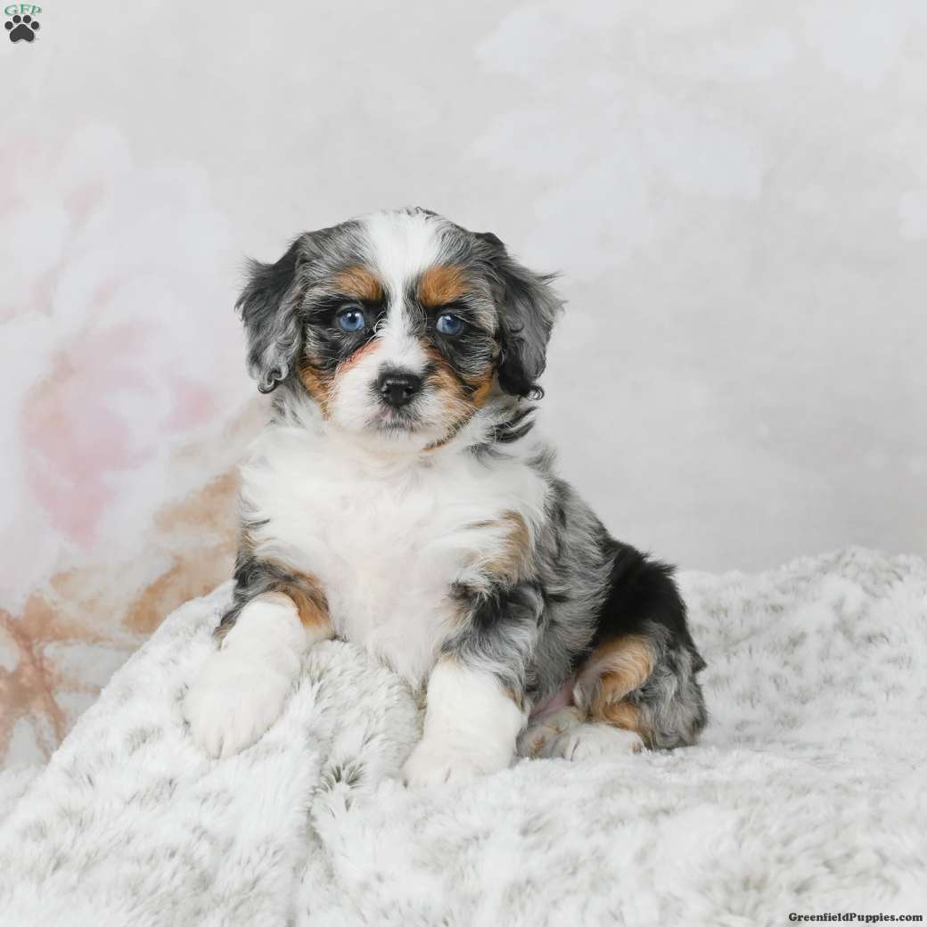 Marco is a happy, healthy Mini Bernedoodle F1B. Looking for a forever home. He is family raised and very socialized also a smart, teachable pup. His dad weighs 10 pounds and mom weighs 30 pounds. To adopt Marco call today!