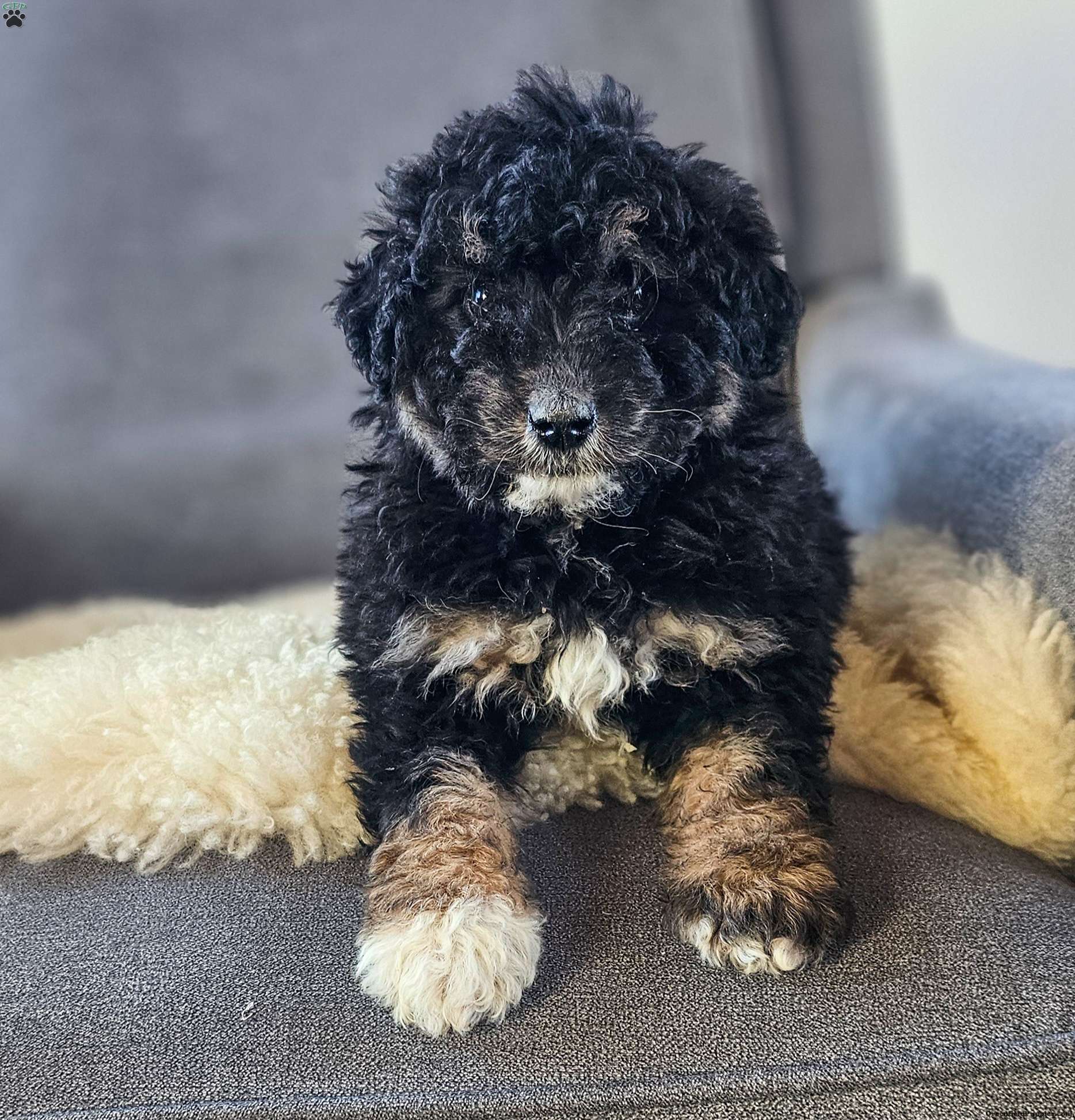 Natalie is a tri color mini bernedoodle. She comes vet-checked, microchipped and up to date on vaccines. Full grown weight is 20-25 lb. She is covered by a one year health guarentee.