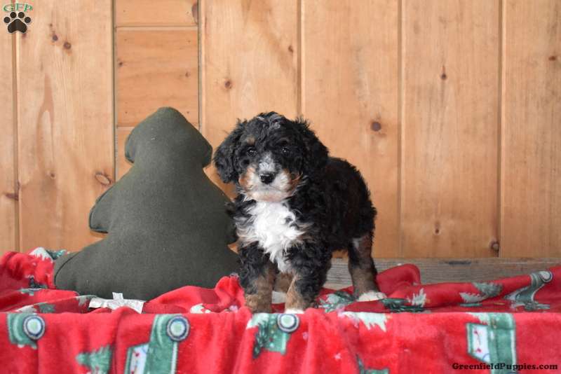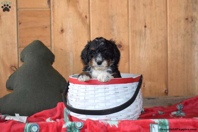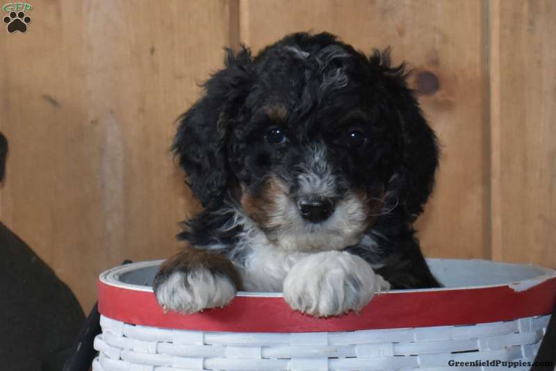 Shadow is a friendly F1B Miniature Bernedoodle puppy available to a forever family. This cute pup will come home vet checked, up to date on shots and de-wormer, and with a health guarantee provided by the breeders. Shadow is being raised and socialized by a family with children. This lively little one is ready to be your lovable companion!