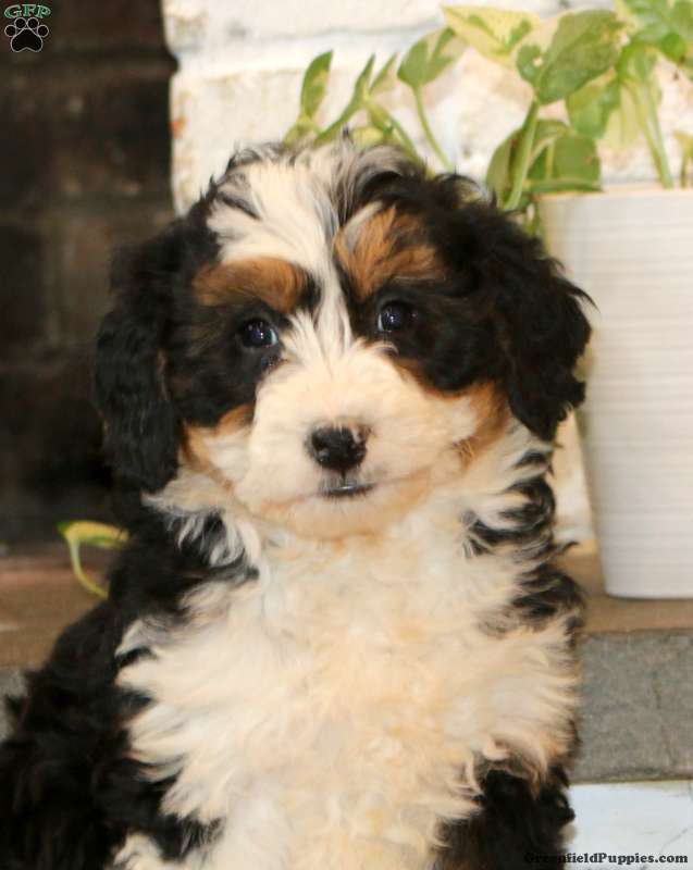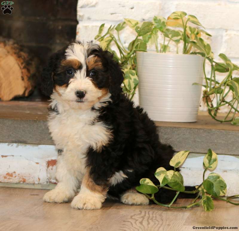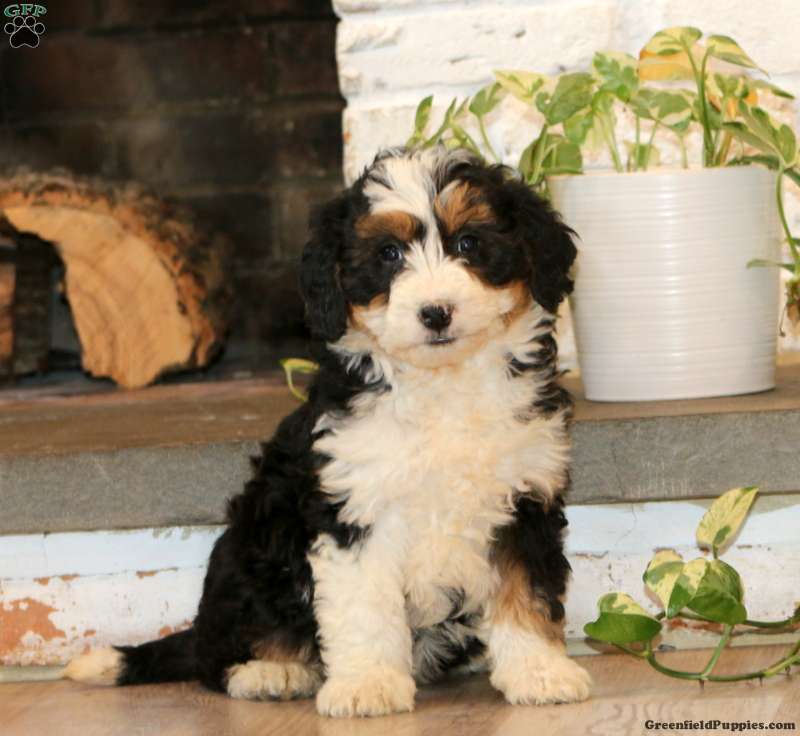 Come and meet Willow, an expressive and beautiful Mini Bernedoodle puppy! This friendly girl is socialized and ready to be adored by her forever family! Willow has been seen by a vet and is up to date on shots and de-wormer. She also comes home with a 30 day health guarantee and an extended genetic health guarantee, both provided by the breeder.
