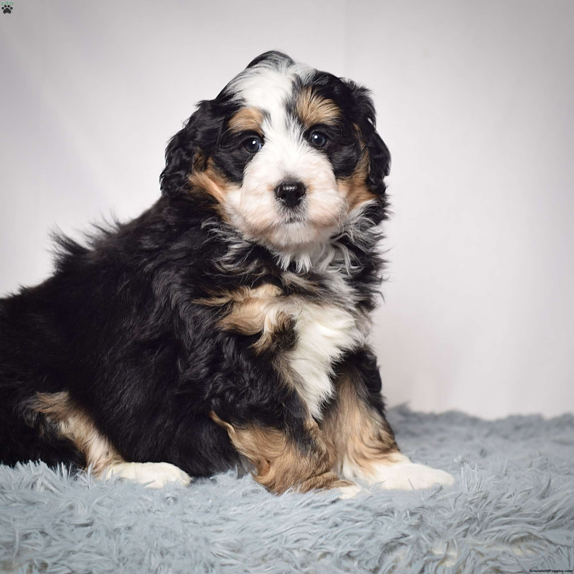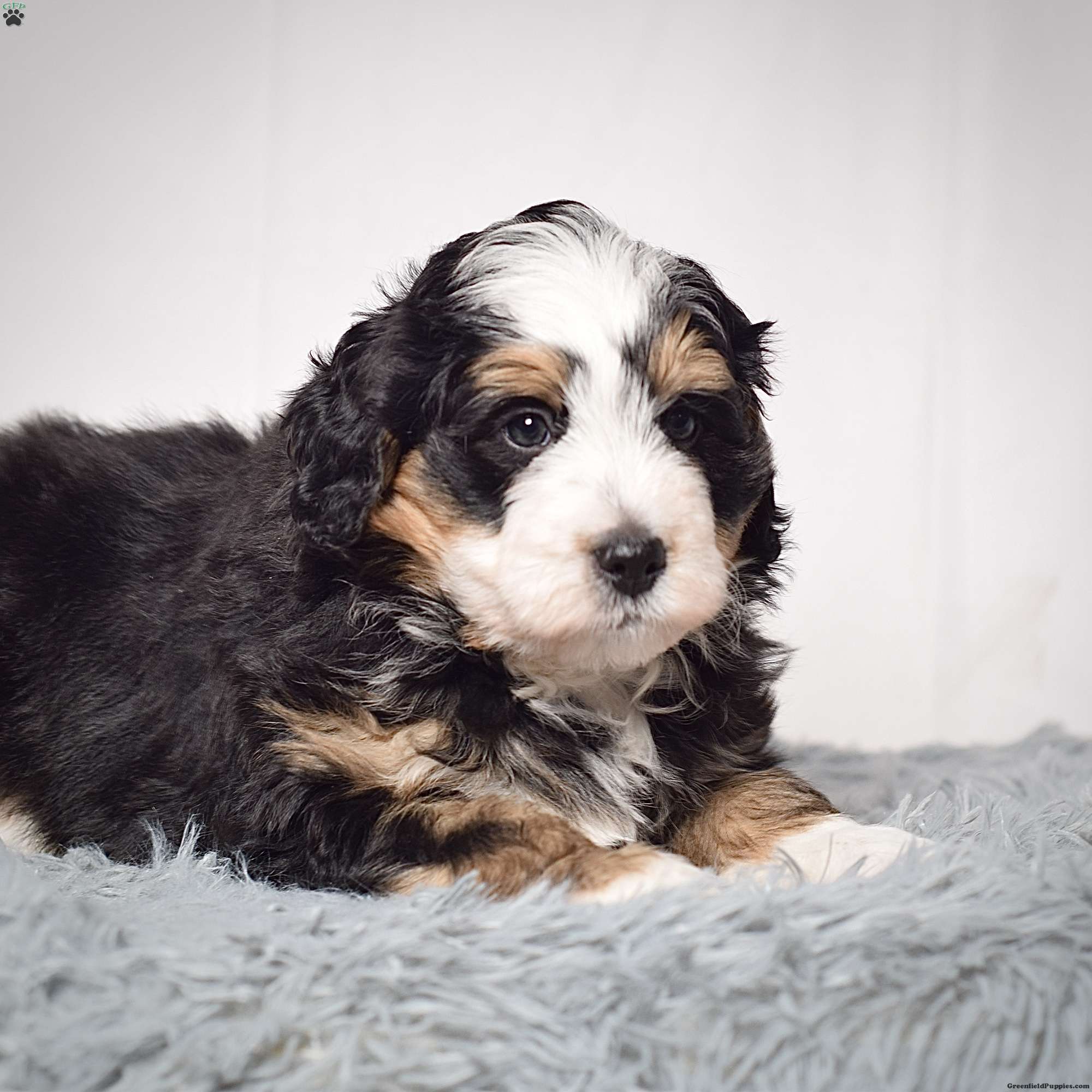 Willson is a mini bernadoodle from Willow and Blake. He is an adorable little guy with a standard tri colored coat.