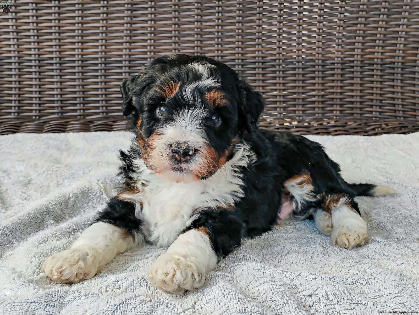 Say hello to Zeke! He is a handsome Micro Mini Bernedoodle. He is looking for his new forever family. We expect him to be about 20lbs full grown.