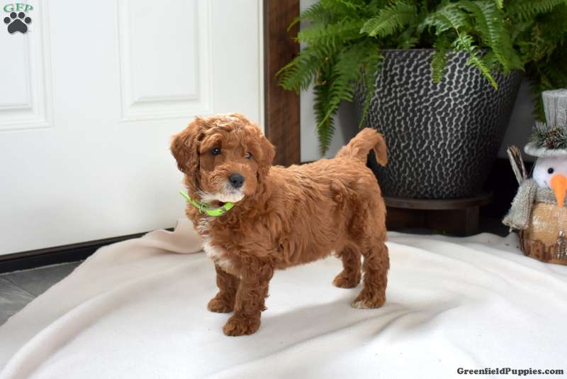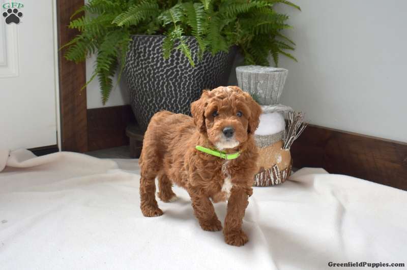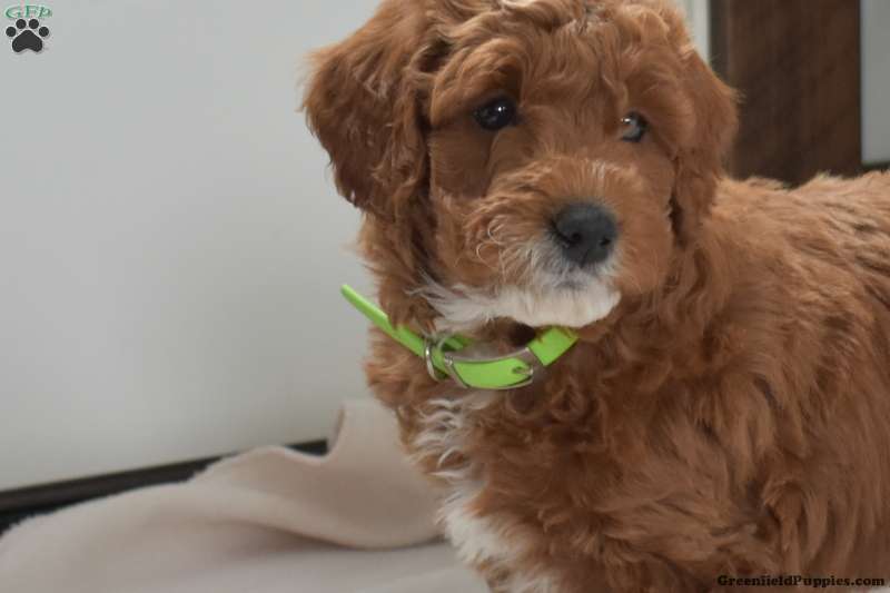 Asher is a precious and petite F1BB Miniature Goldendoodle puppy who loves to play! This friendly boy is being raised by a family with children and is well socialized with the kids. Asher comes home microchipped and with a health guarantee provided by the breeders. He has also been seen by a vet and is up to date on shots and de-wormer. Asher is ready to meet his forever family!