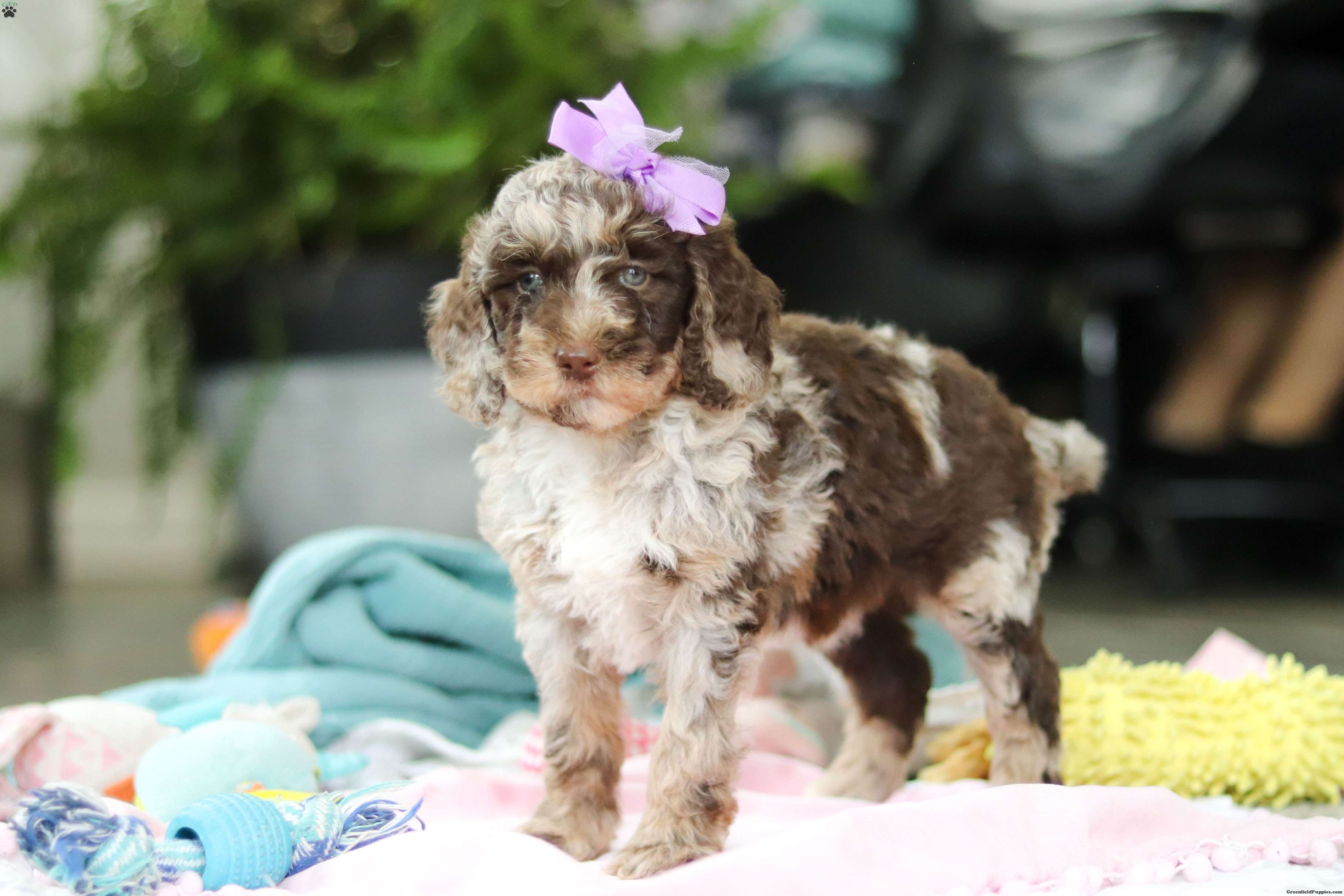 Introducing Bailey, an adorable Mini Goldendoodle puppy—full of personality and ready to melt your heart! She’s the perfect blend of the Golden Retriever’s gentle nature and the Poodle’s intelligence. Goldendoodles are well known for their affectionate, loyal, and playful spirit, making them wonderful companions for families or individuals alike. Whether it’s romping in the yard, going for a walk, or curling up for a nap, she’ll be happiest just being by your side. These pups are also quick learners who thrive on love, attention, and plenty of interaction!