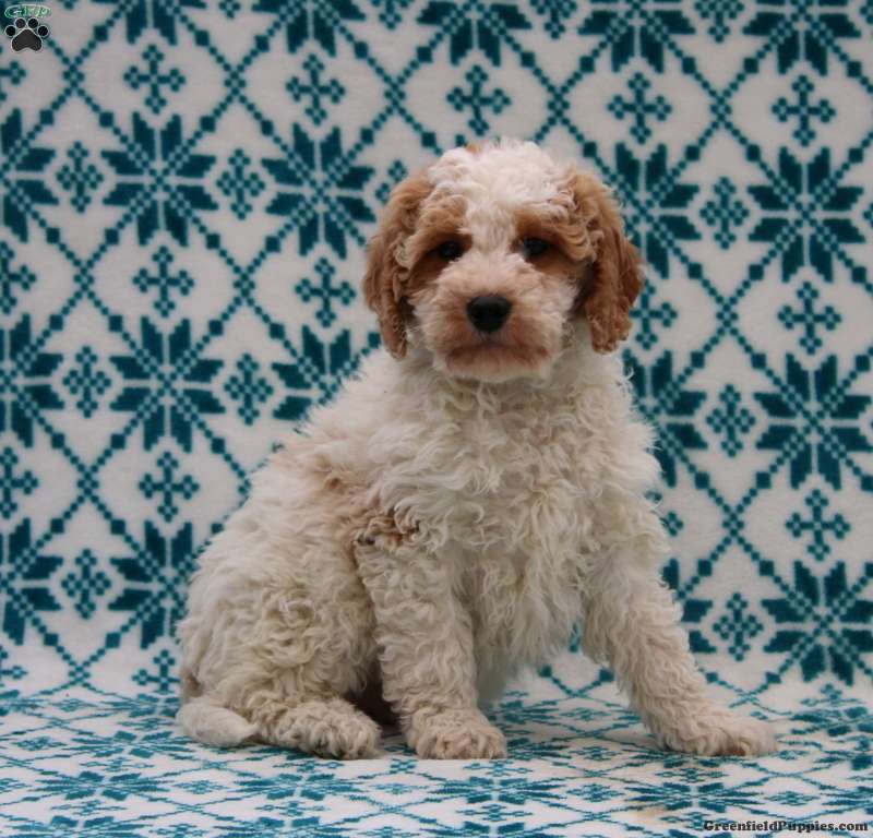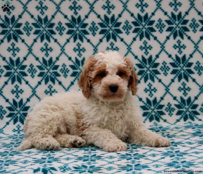 Dandy is an adorable Miniature Goldendoodle puppy with a soft and curly coat. This sweet little one is socialized and ready to meet you! Dandy comes home with a 30 day health guarantee and an extended genetic health guarantee, both provided by the breeders. This cutie-pie has also been seen by a vet and is up to date on shots and de-wormer.
