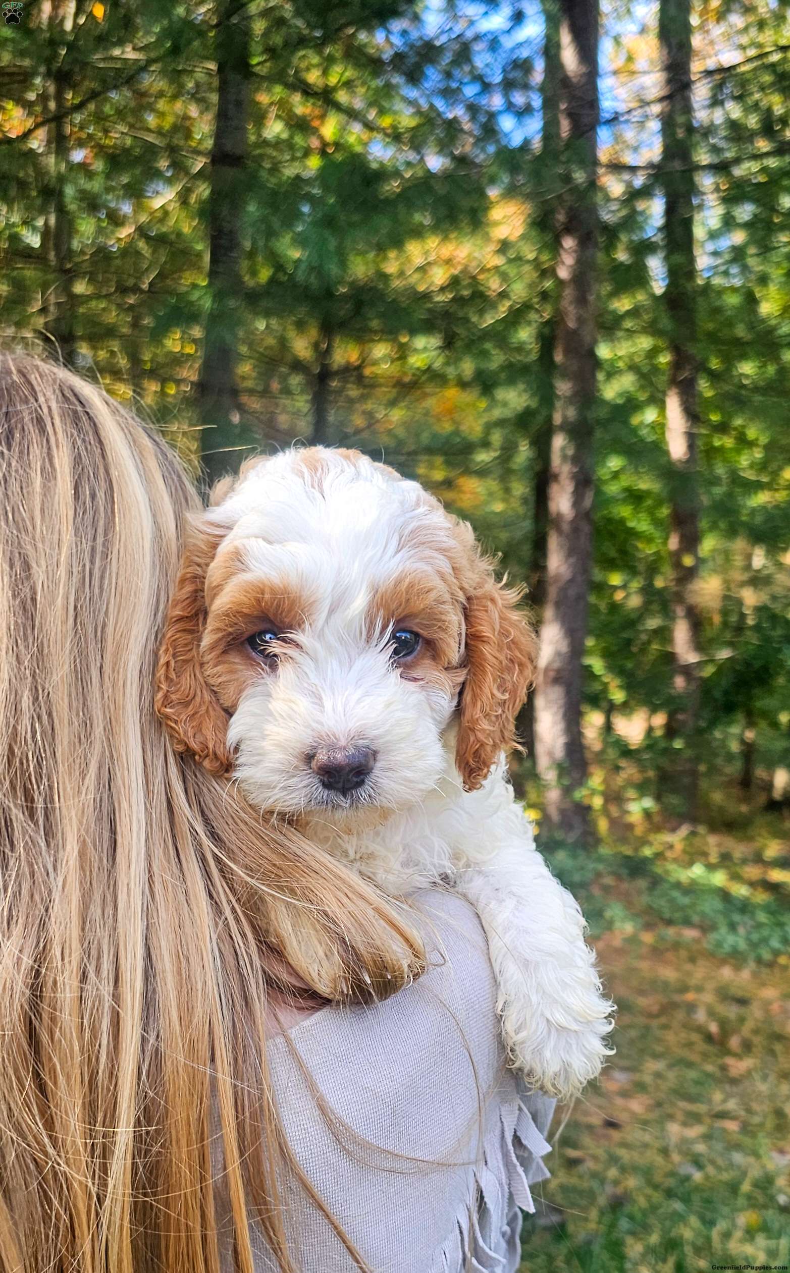 Shes a beautiful multi generation mini goldendoodle. Shes vet-checked,microchipped and up to date on vaccines and dewormer. She is covered by a one year health guarentee.