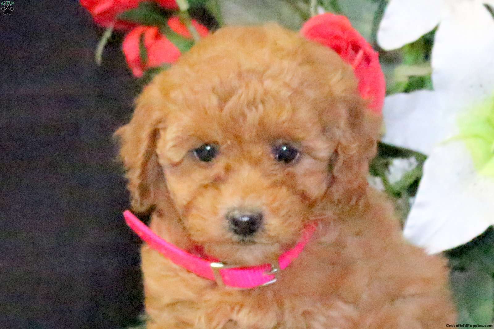 Pansy is a spirited and sweet F1B Miniature Goldendoodle puppy who loves to have fun! This affectionate girl comes home with a 30 day health guarantee provided by the breeders, plus has been seen by a vet and is up to date on shots and de-wormer. Pansy is well socialized, family raised with children, and ready to meet you!