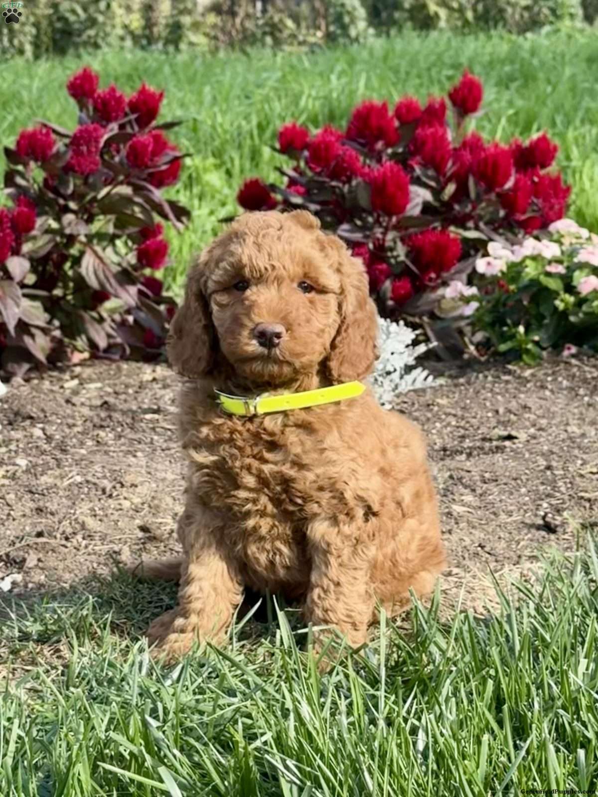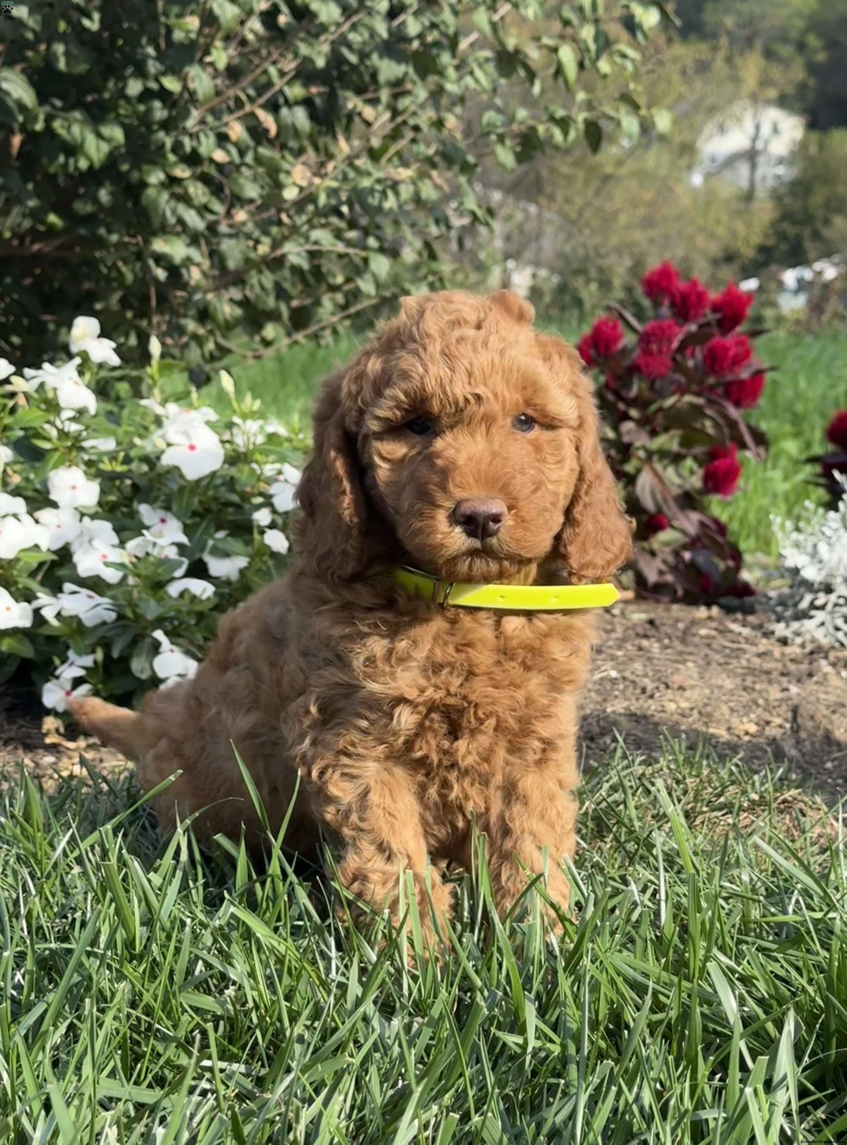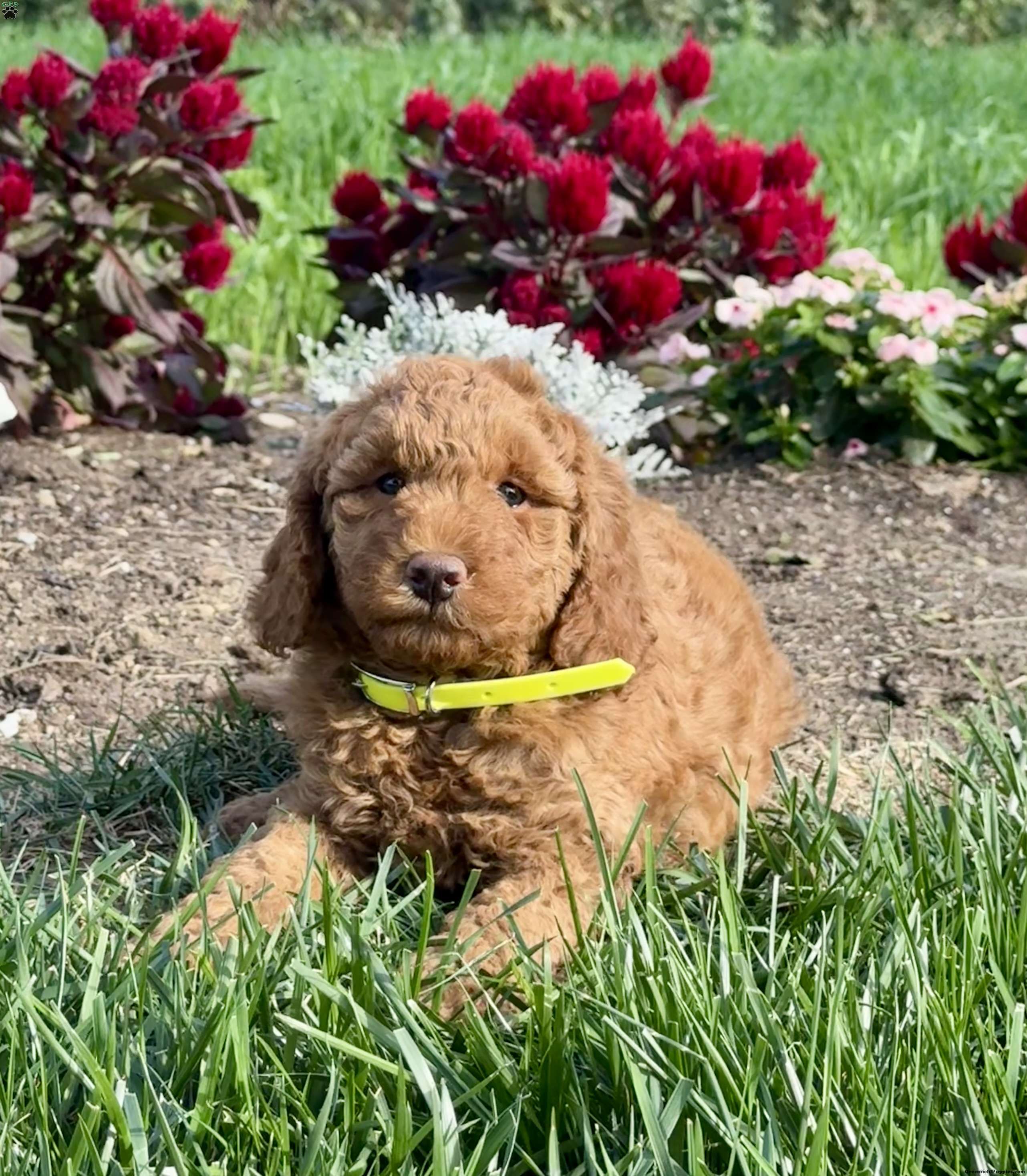 Meet Polly! This F1B Goldendoodle puppy has a plush coat and the most adorable little face that will cover you with tons of sweet kisses.