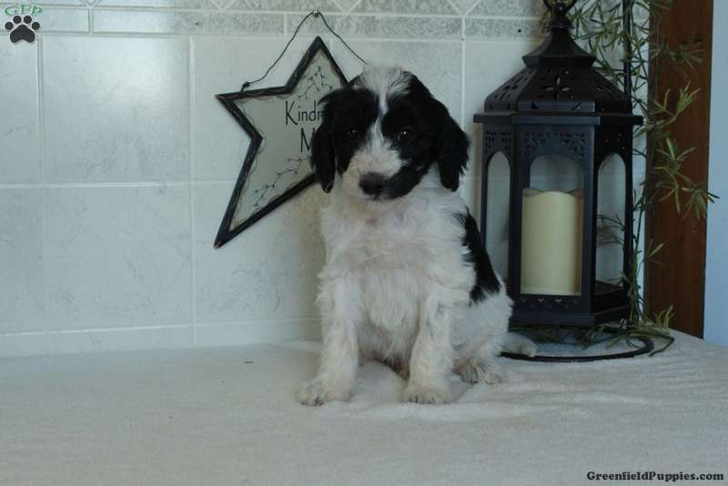 Scooter is a cuddly and sweet Miniature Goldendoodle puppy who loves to play! This cutie is socialized, spending time with children, and ready to meet you! Scooter comes home with a health guarantee provided by the breeder, plus has been seen by a vet and is up to date on shots and de-wormer.