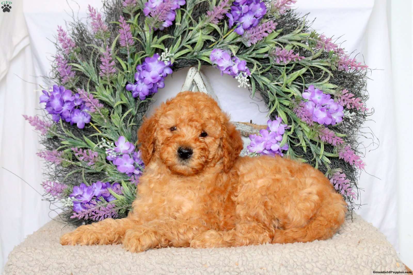 Meet your new BFF, Shaw! This curly Mini Goldendoodle puppy is vet checked & up to date on shots & wormer, plus comes with a health guarantee provided by the breeder! Shaw is super playful & well socialized!