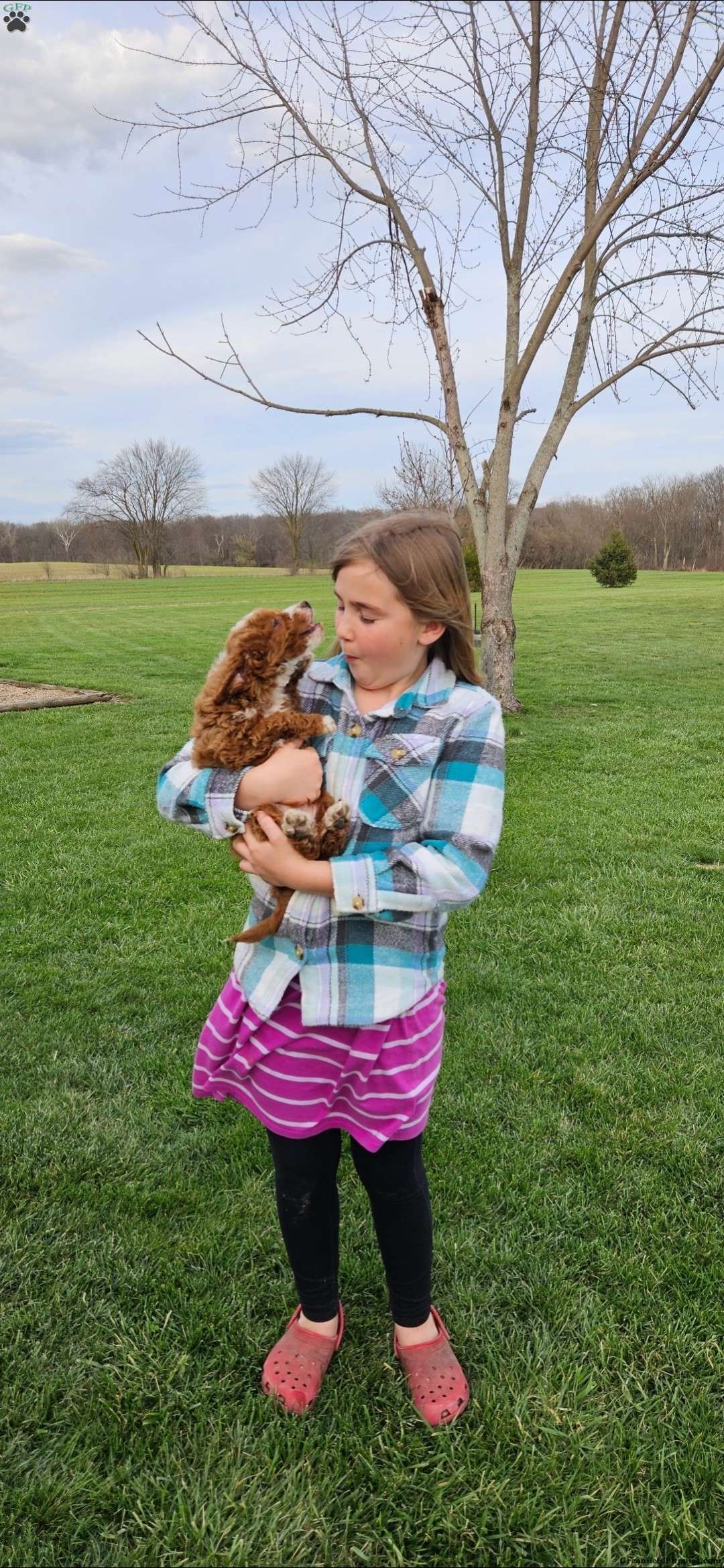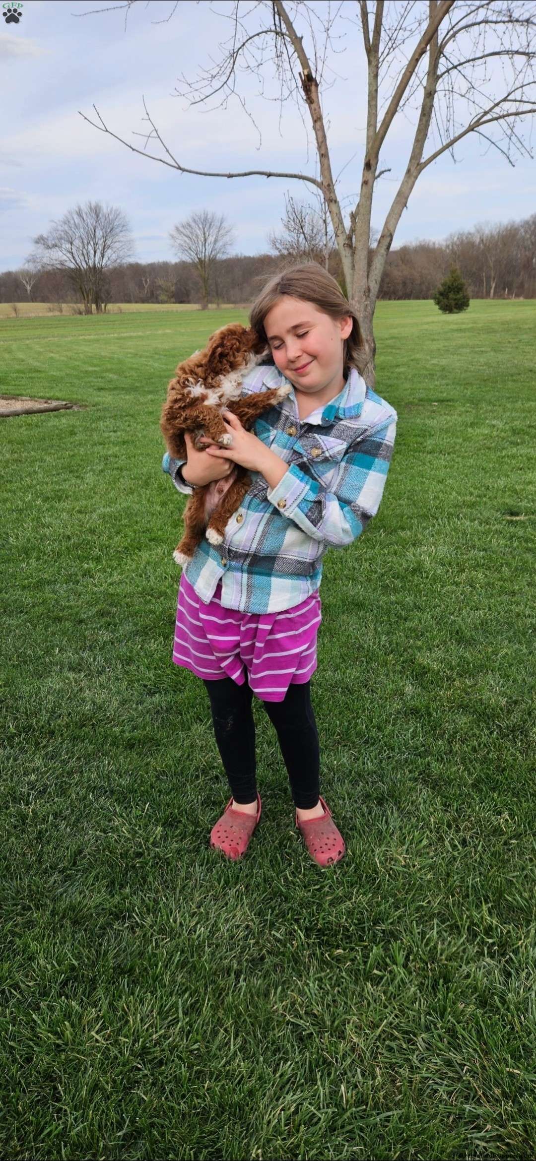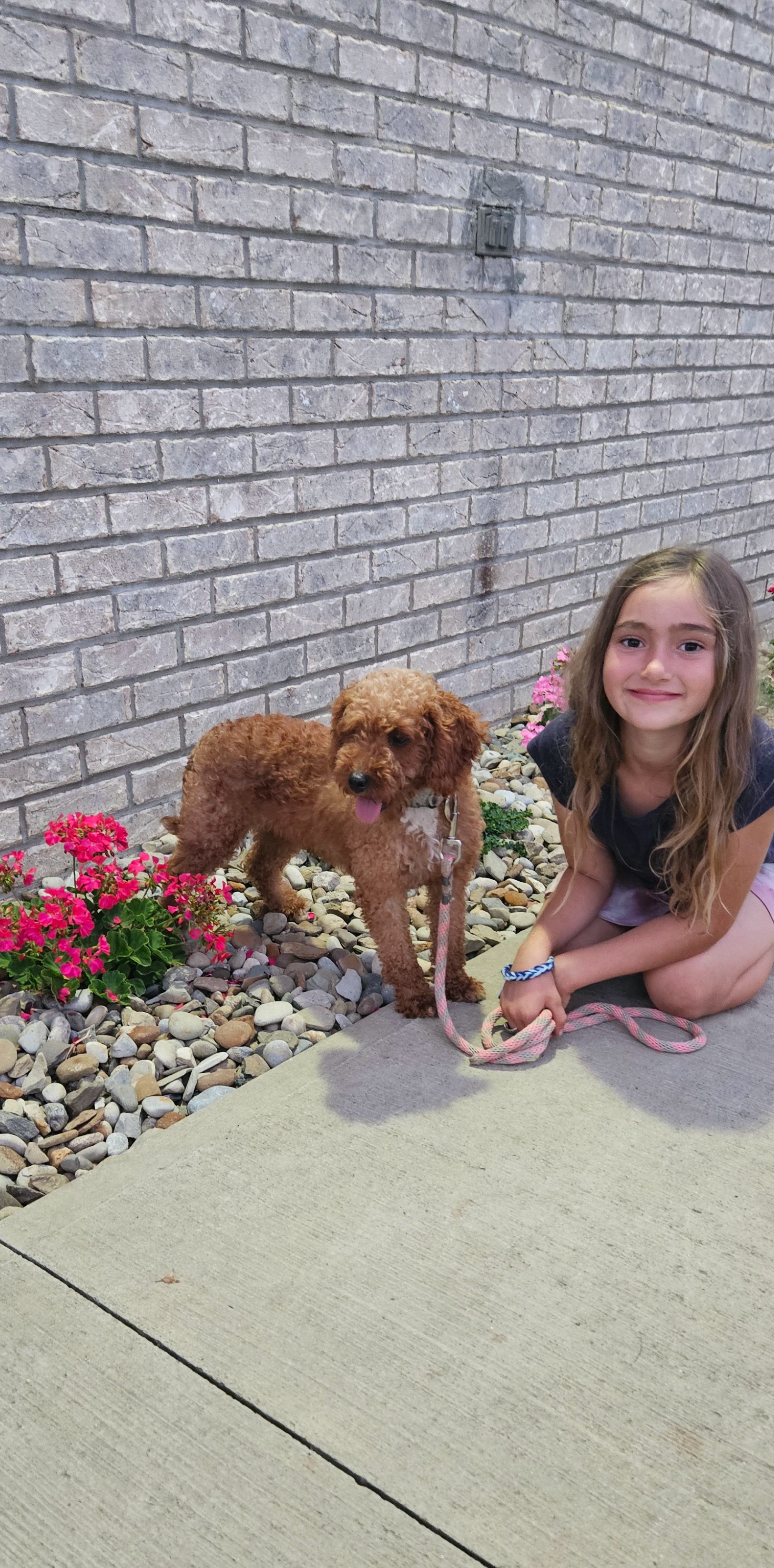 Her mom is around 15 pounds and is a very sweet mini golden doodle who is amazing with children!
