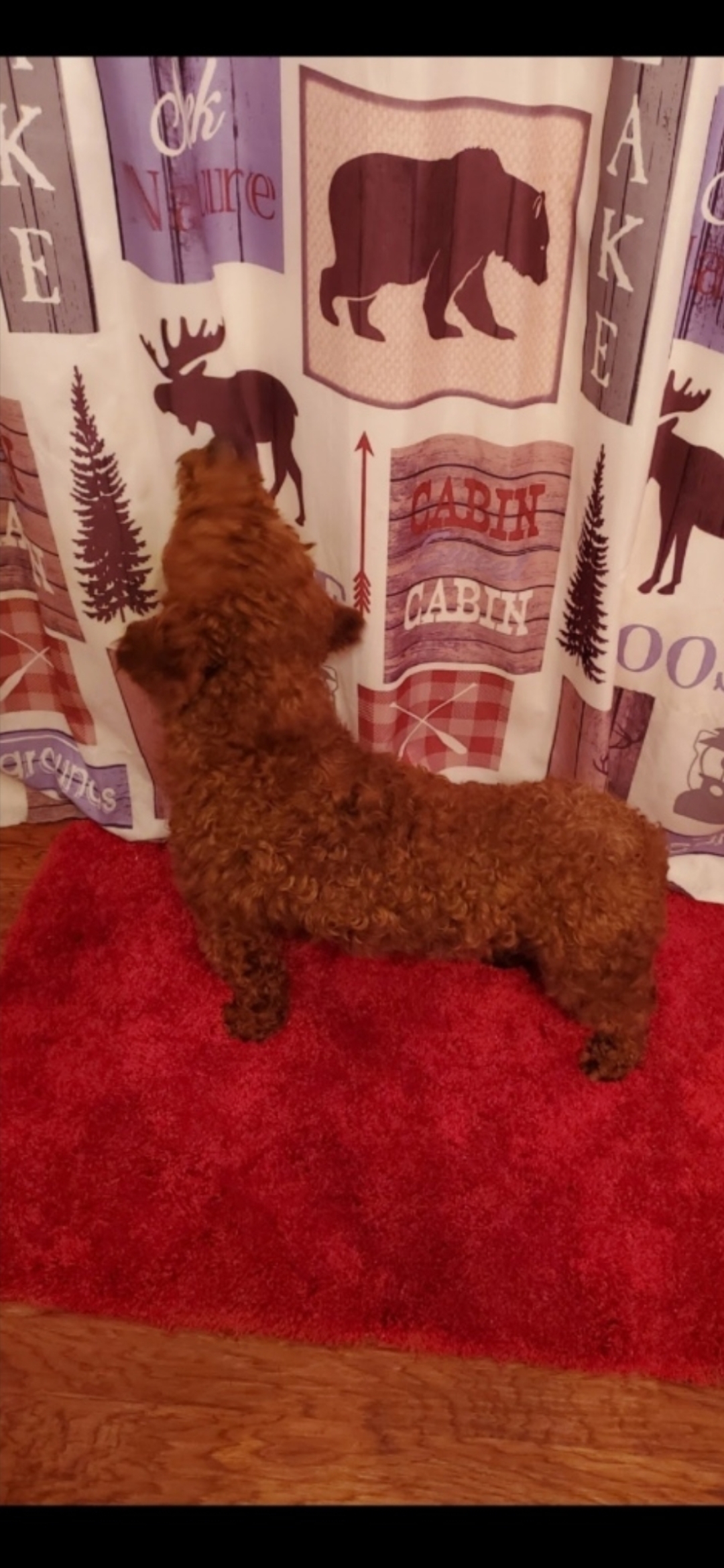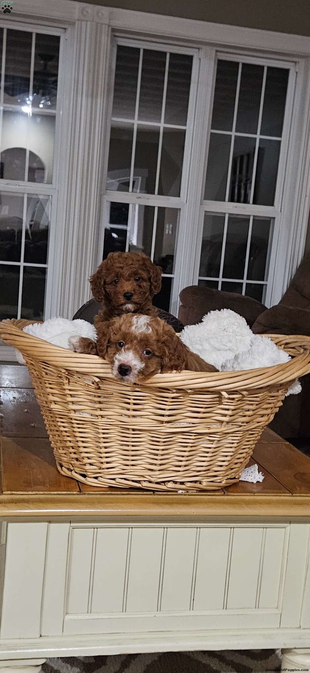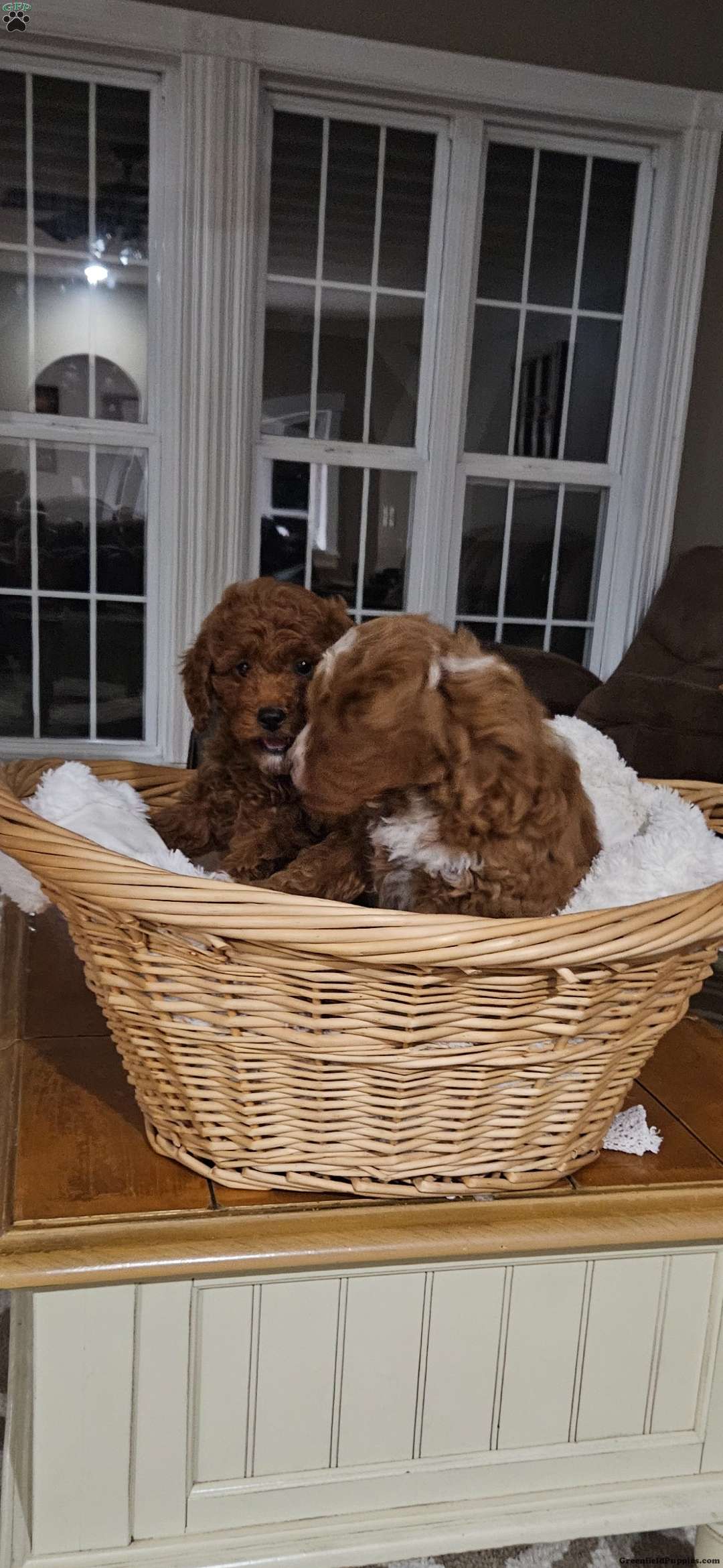 Her mom is around 15 pounds and is a very sweet mini golden doodle who is amazing with children!