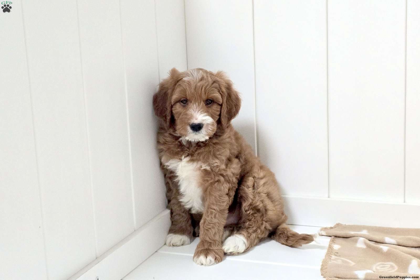 Winchester is a cuddly and sweet Miniature Goldendoodle puppy with a bubbly personality! This cutie comes home with a 30 day health guarantee plus an extended genetic health guarantee, both provided by the breeder. Winchester has been seen by a vet and is up to date on shots and de-wormer. This pretty pup is well socialized and ready to join his forever family!