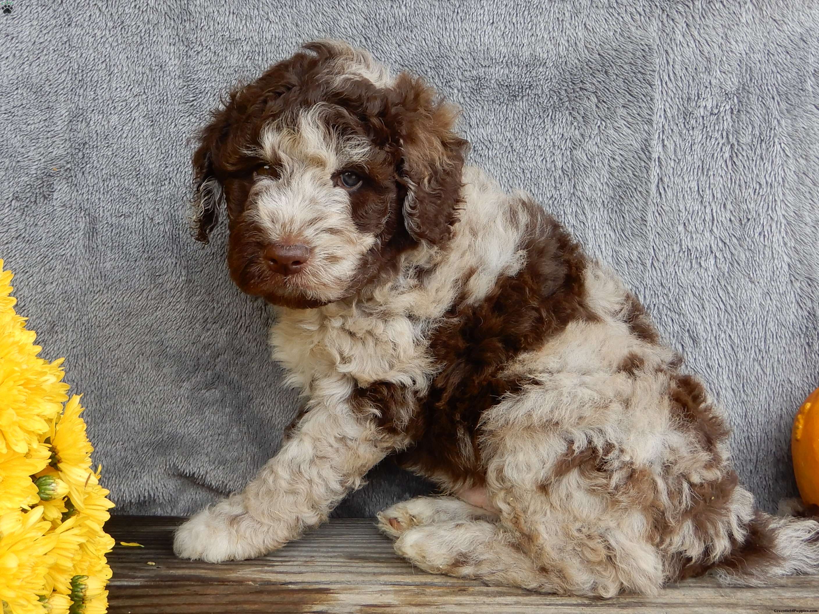 Hi! Im Sam, the handsome, chocolate merle F1B mini labradoodle you’vebeen waiting to meet!!! Im a small bundle of joy, full of hugs and kisses! My coat is soft and fluffy. My unique colors are blended to perfection!! I’d love to be a part of your family, bring puppy love into your home, run and play with you, and of course lots of snuggling!! Prepare to fall in love!