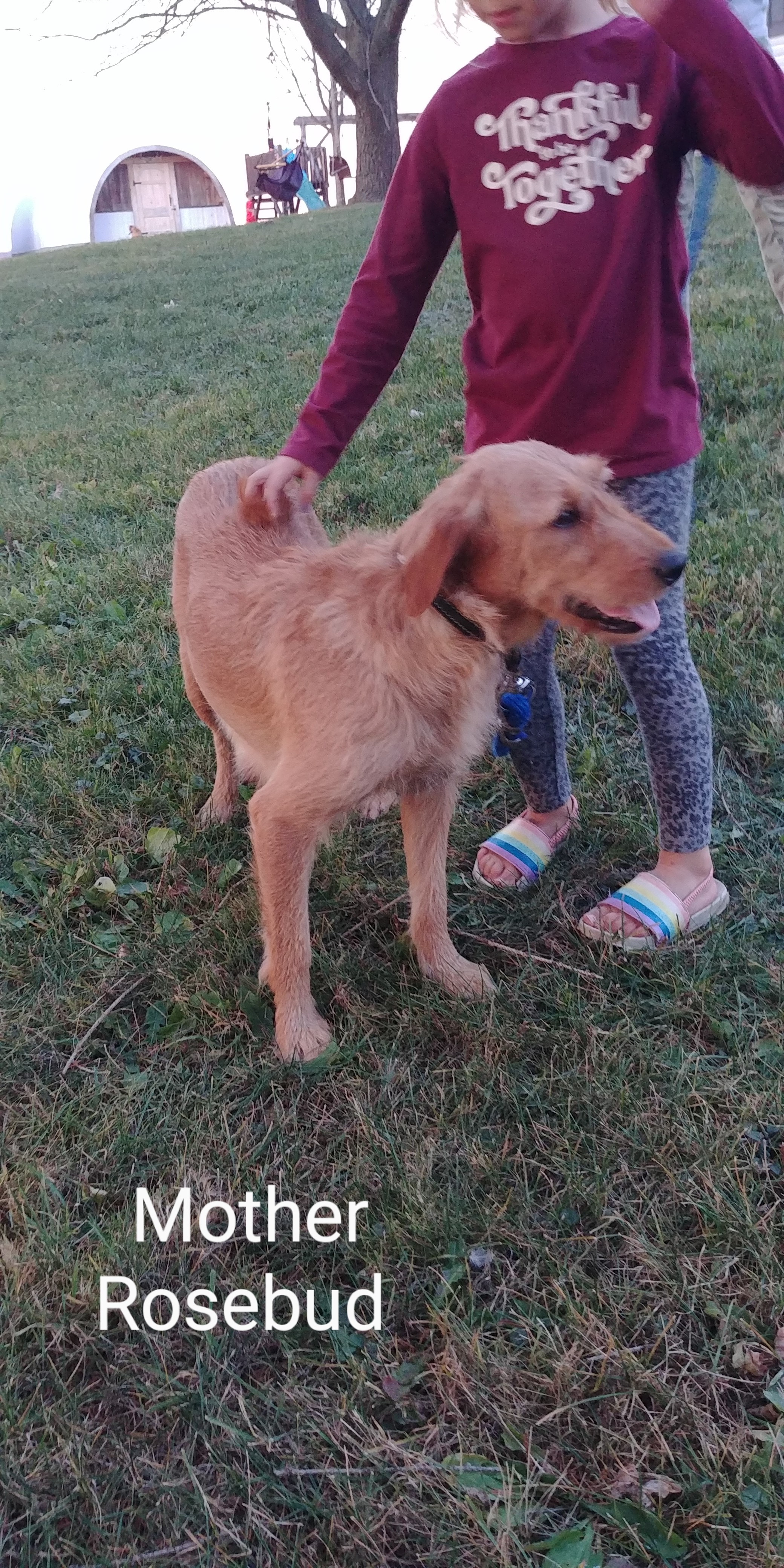 Mom-Rosebud is a red mini labradoodle weighing 35 lbs and has been with us since she was born in 2021, dad is a mini poodle weighing 10 lbs. So puppies are expected to weigh between 12-25 lbs.