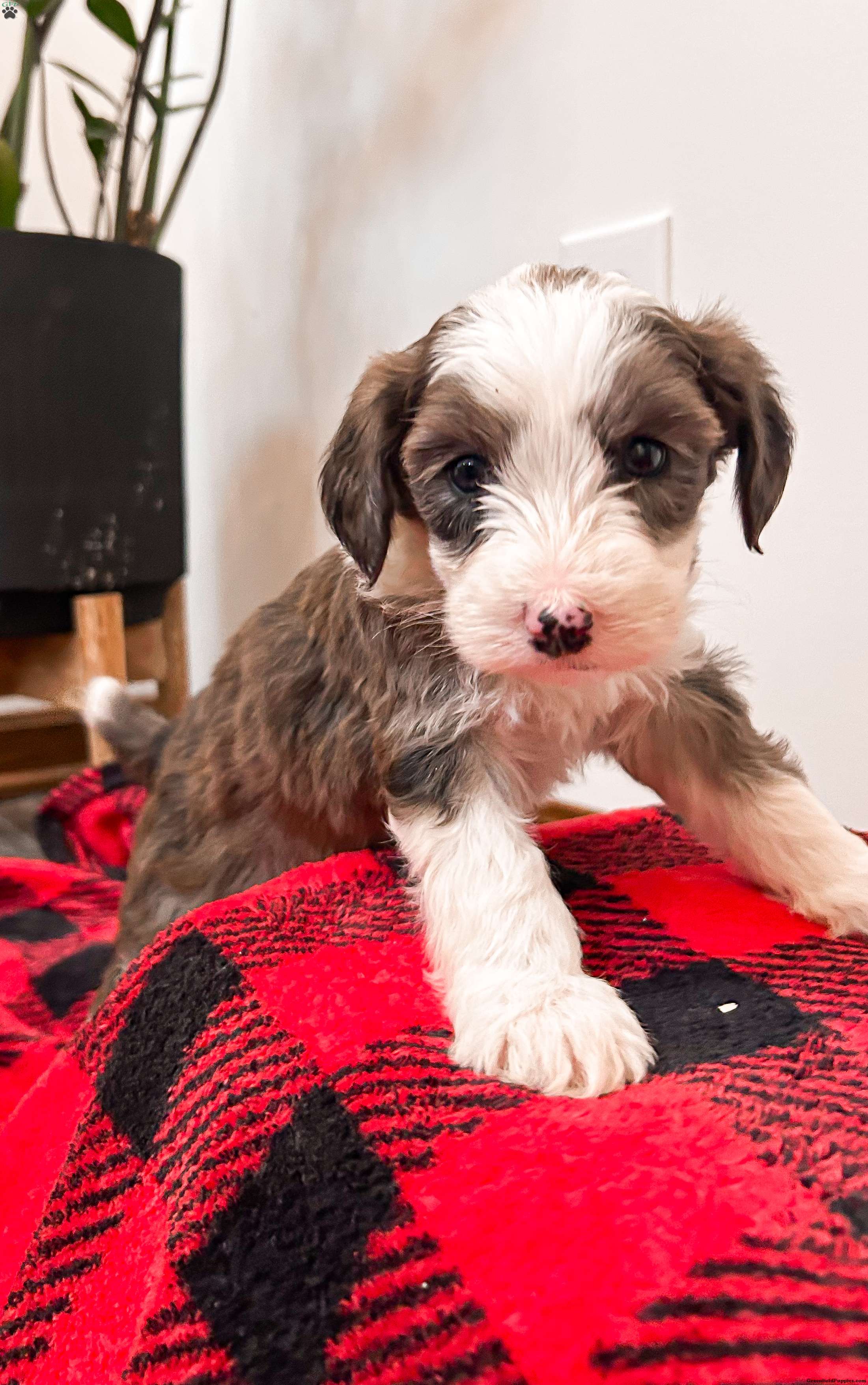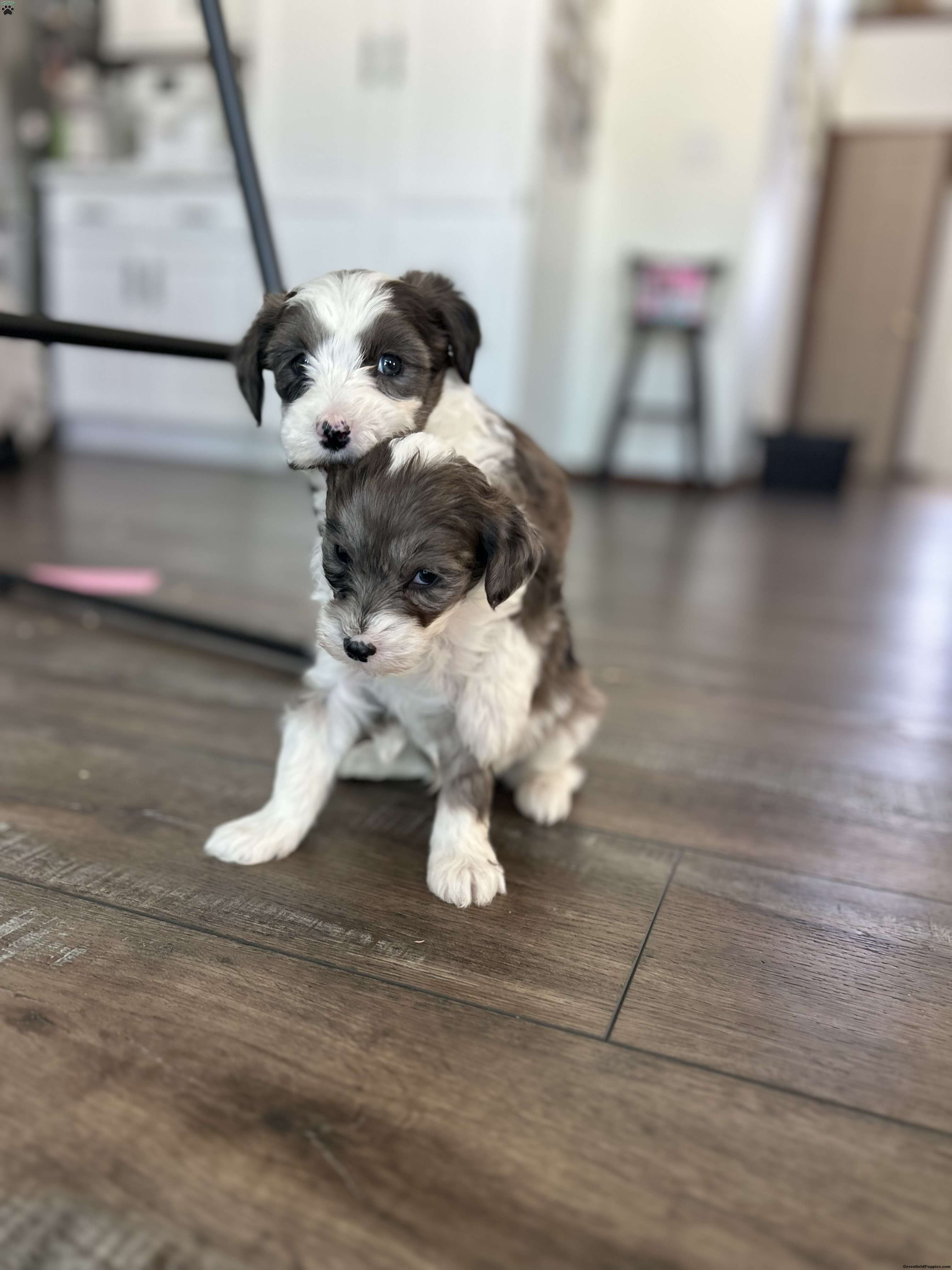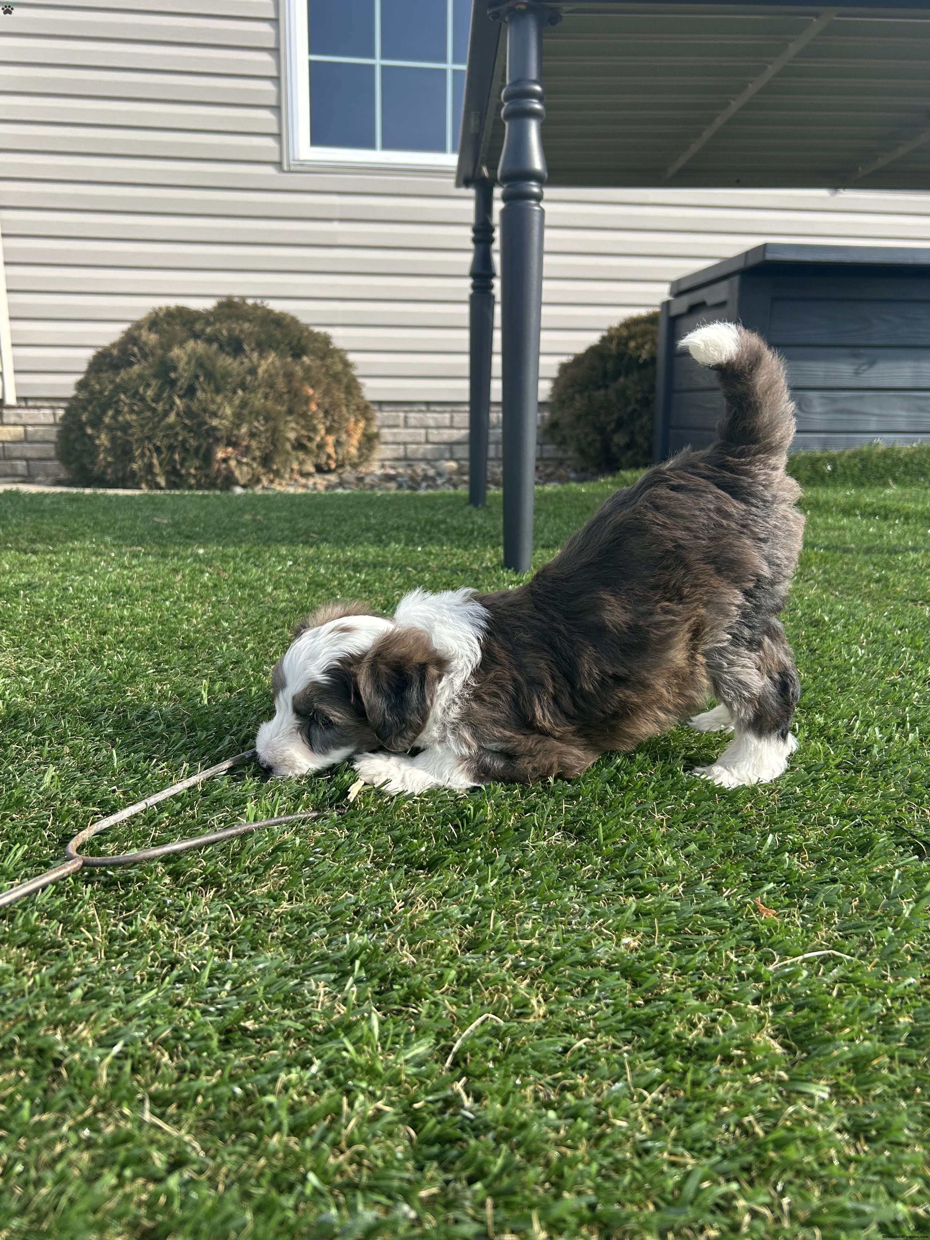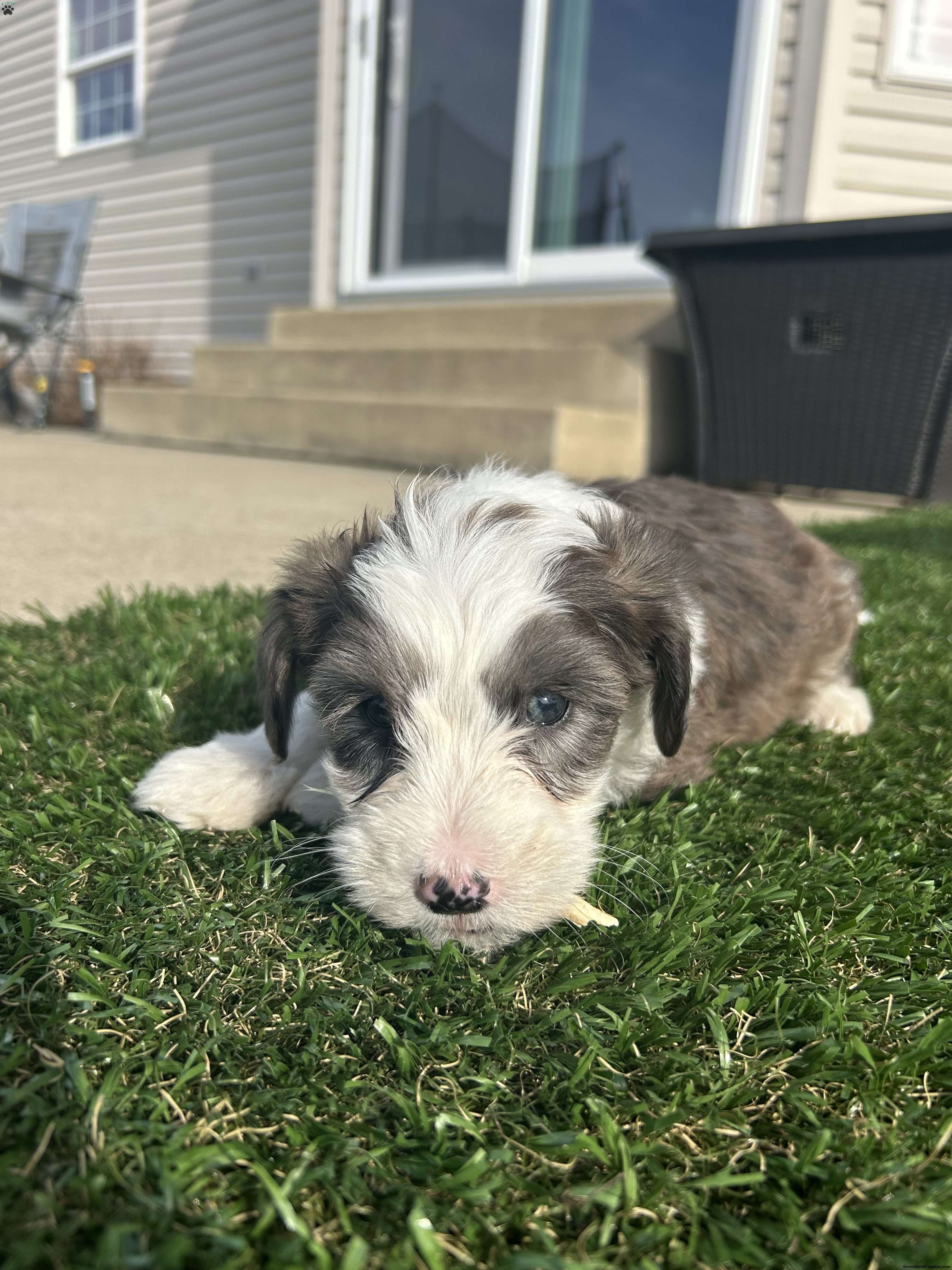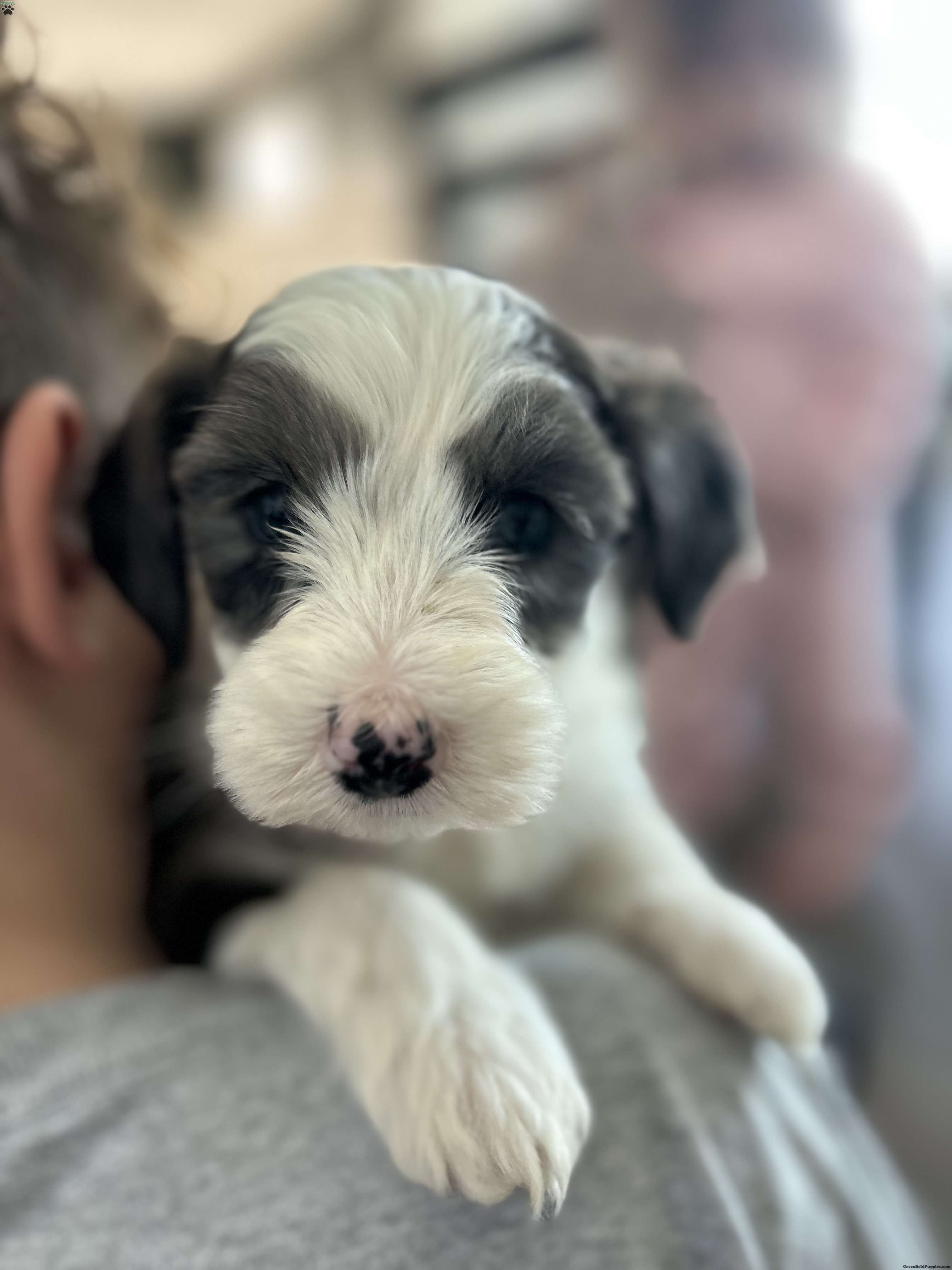Meet Arrow! An Adorable F1B Mini Sheepadoodle. Which means he is 25% english sheepdog And 75% Mini toy poodle. This gives them the big dog mantality (less barking, more mature, And they are more hypoallergenic) in a smaller dog. Arrow is very playful and friendly. Loves all the attention. Our kids play with him daily. Arrow is being raised in a single pet family home with his siblings. we predict that Arrow will be 20-25 pounds. He is up to date on all shots and wormer. He will also come with a 30 day health Guarentee. For more information on this cute pup, contact Brenda Weaver to set up a facetime or Zoom call.