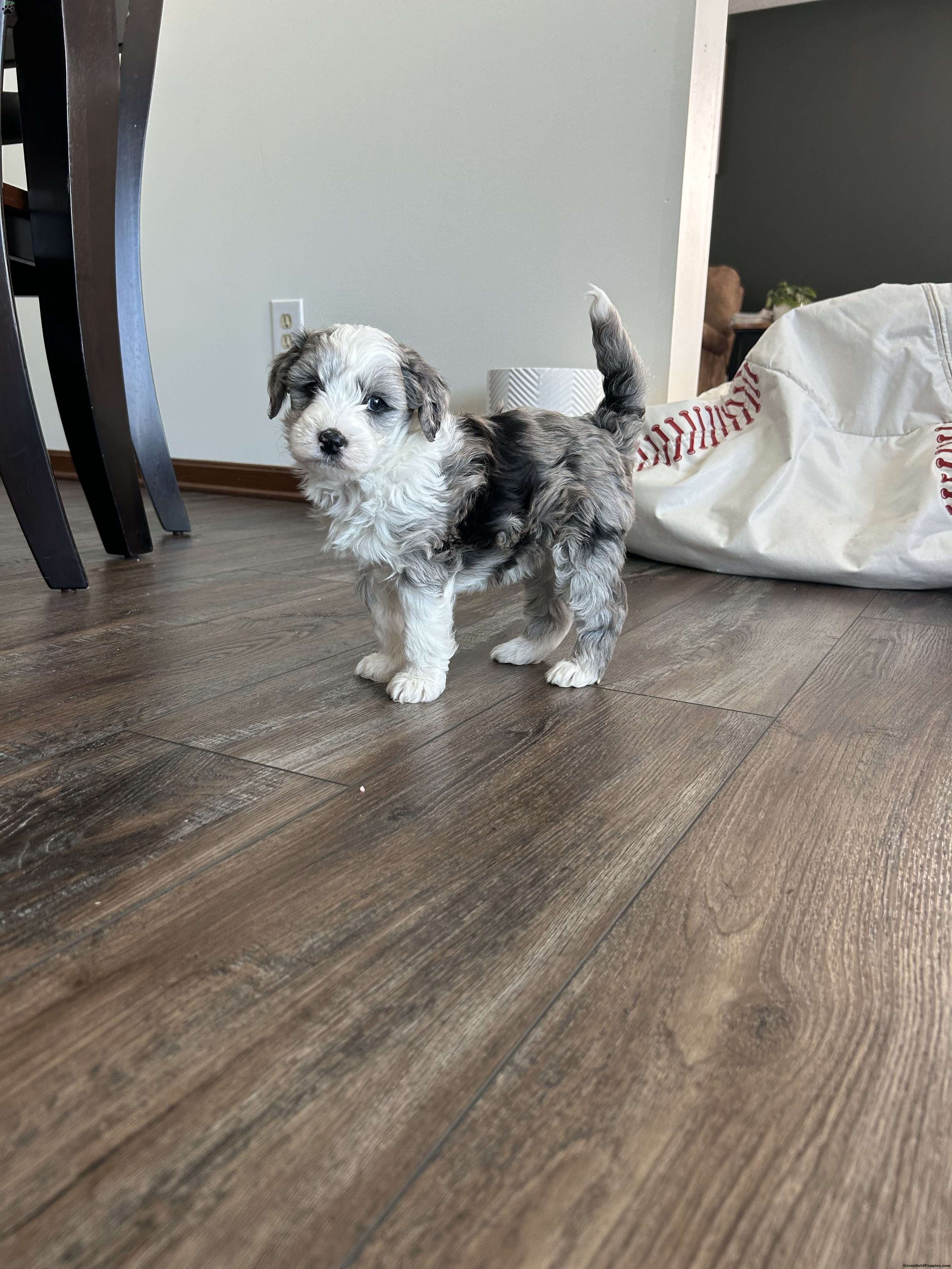Meet Ricky! An Adorable F1B Mini Sheepadoodle. Which means he is 25% english sheepdog And 75% Mini toy poodle. This gives them the big dog mantality (less barking, more mature, And they are more hypoallergenic) in a smaller dog. He will be around 20-25 pounds. Ricky is very playful and friendly has a beautiful blue merle coat!!! hes also very laid back, Our kids play with him daily. Ricky is being raised in a single pet family home with his siblings. He is up to date on all shots and wormer. He will also come with a 30 day health Guarentee. For more information on this handsome pup, contact Brenda Weaver to set up a facetime or Zoom call.