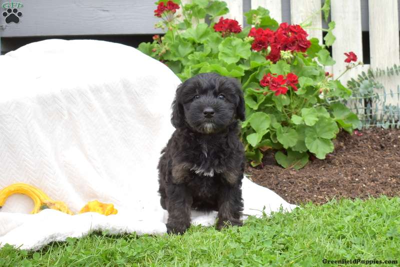 Say hello to Breeze, a cute and playful Miniature Whoodle puppy! This friendly pup is vet checked, up to date on shots and wormer, plus comes with a health guarantee provided by the breeder. Breeze is family raised with children and is well socialized. To find out more about this perfect pup, please contact Amos today!