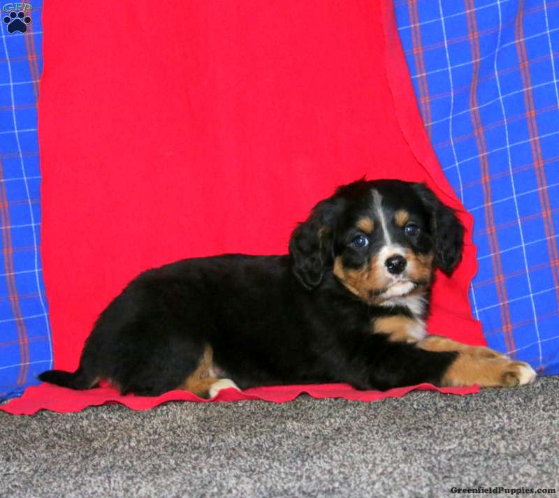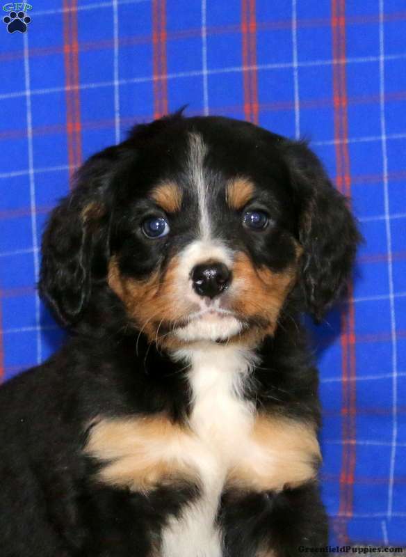 Benji is a fluffy and sweet Miniature Bernese Mountain Dog puppy who is happy as can be! This cutie-pie is socialized, family raised, and ready to meet you! Benji comes home with health guarantees provided by the breeder, plus has been seen by a vet and is up to date on shots and de-wormer. This precious pup will be a lovable sidekick!