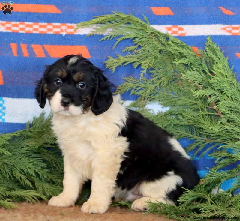 Kyle is a beautiful Miniature Bernese Mountain Dog puppy who is friendly as can be! This sweet boy is socialized and ready to meet you! Kyle comes home with a 30 day health guarantee and an extended genetic health guarantee, both provided by the breeders. This cutie has also been seen by a vet and is up to date on shots and de-wormer.