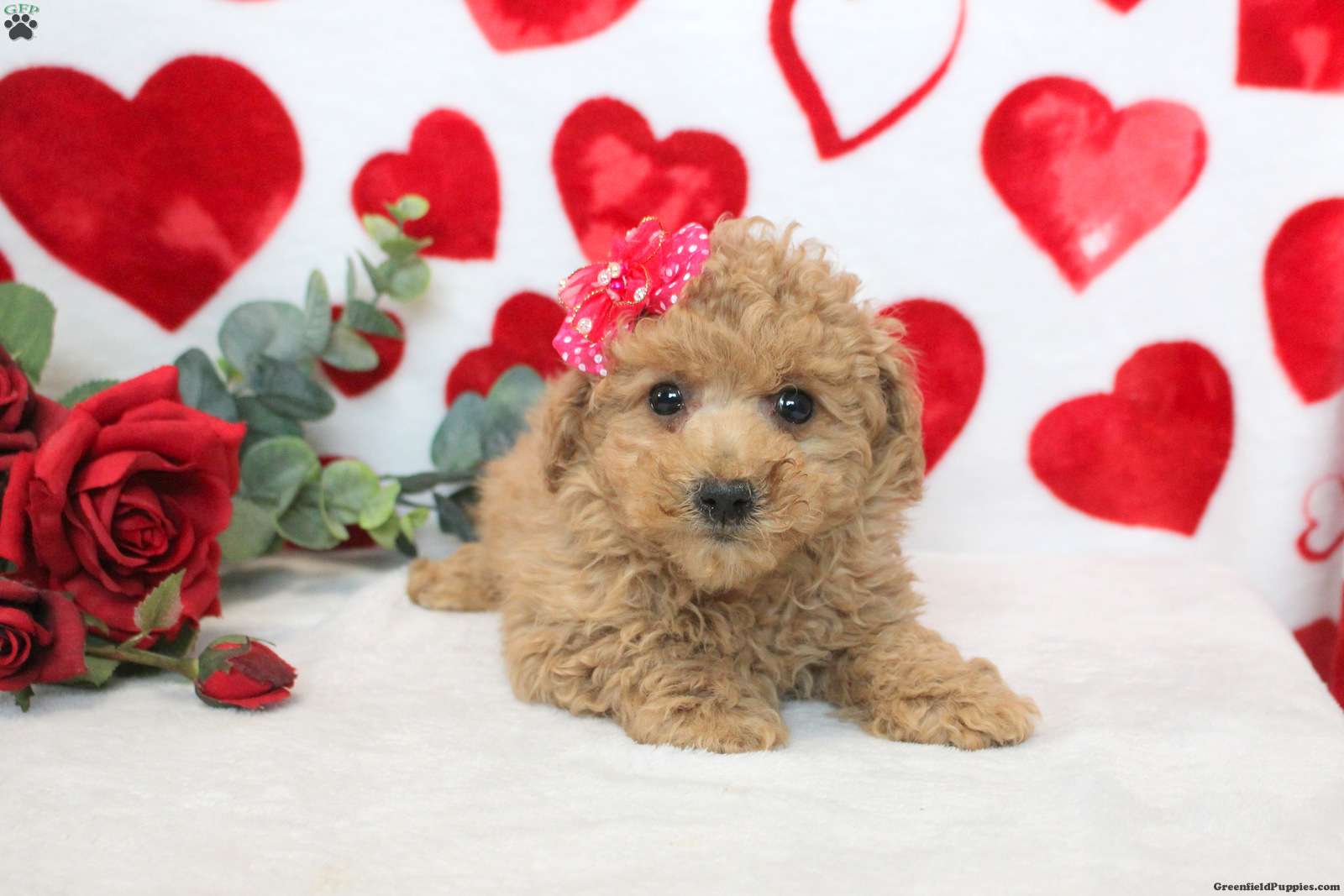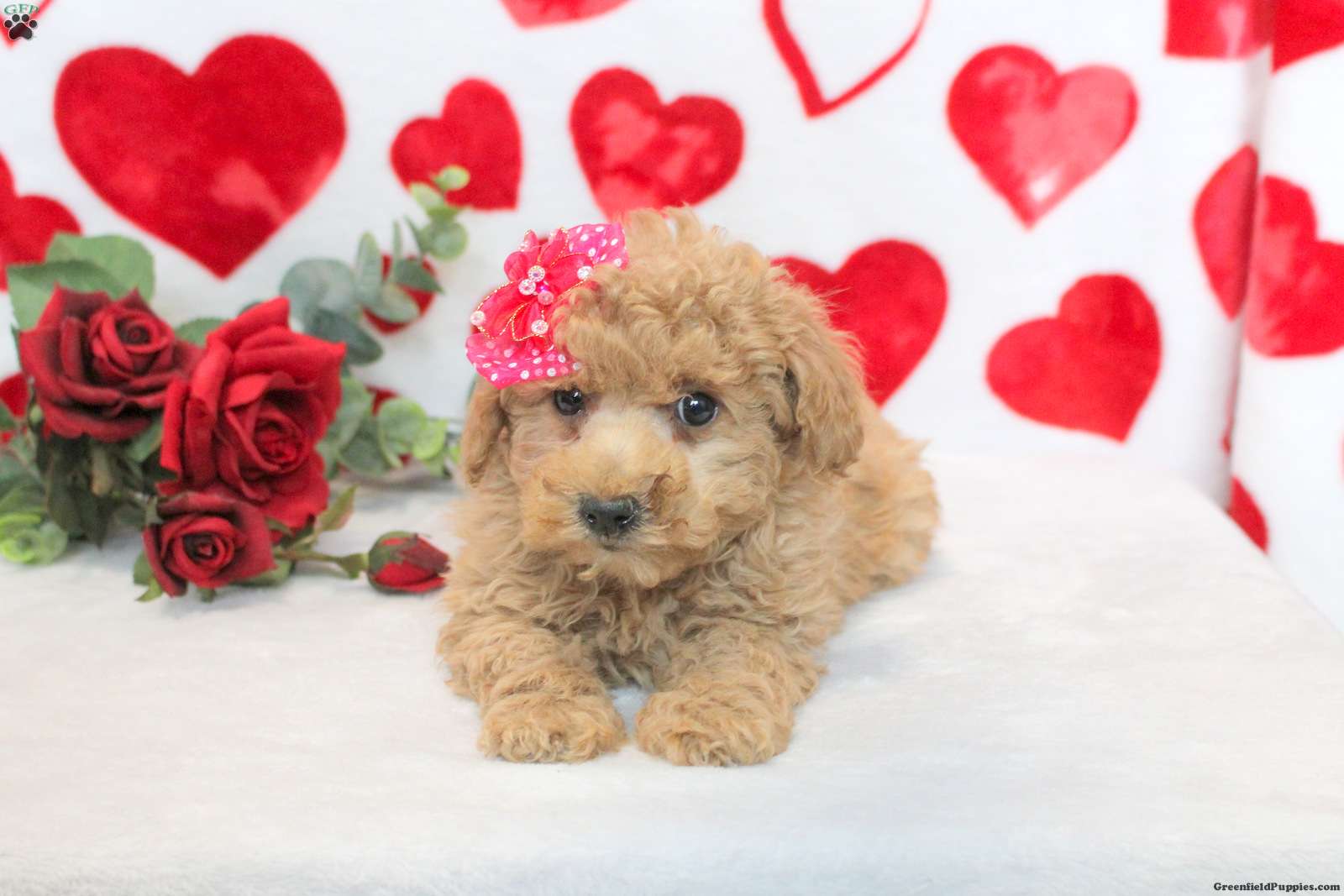 Darling is a sweet natured Miniature Poodle Mix puppy who will love being by your side! This cutie-pie comes home microchipped and with health guarantees provided by the breeder. Darling has been seen by a vet and is up to date on shots and de-wormer. This happy little gal is socialized, family raised with children, and ready to meet you!