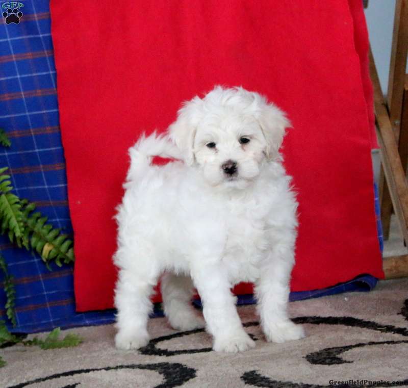 Meet your new BFF, Jamie! This super cute Mini Poodle Mix puppy is vet checked & up to date on shots & wormer, plus comes with a health guarantee provided by the breeder! Jamie is well socialized & currently being family raised with children!