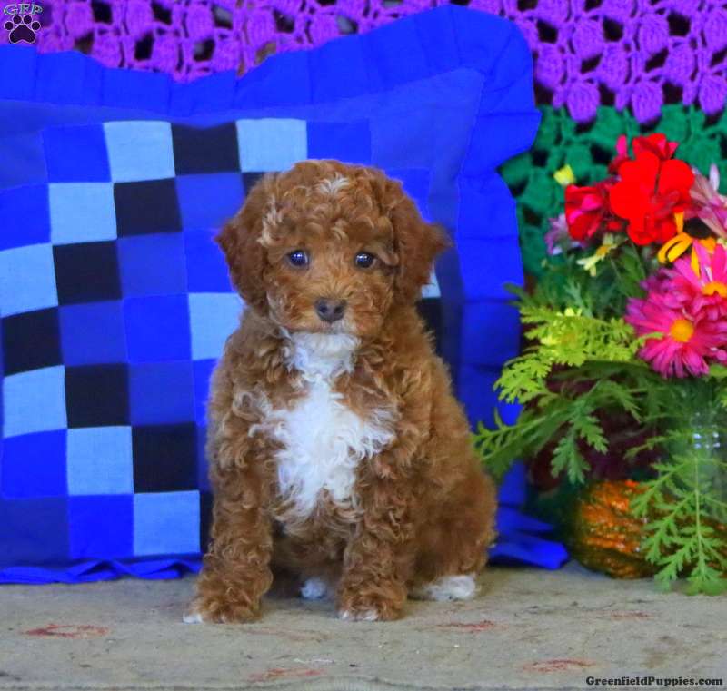 Here comes Jake, a charming Miniature Poodle puppy ready to win your heart! This happy pup is vet checked, up to date on shots and wormer, plus comes with a health guarantee provided by the breeder. Jake is family raised with children and is well socialized. To find out more about this cute pup, please contact Sadie today!