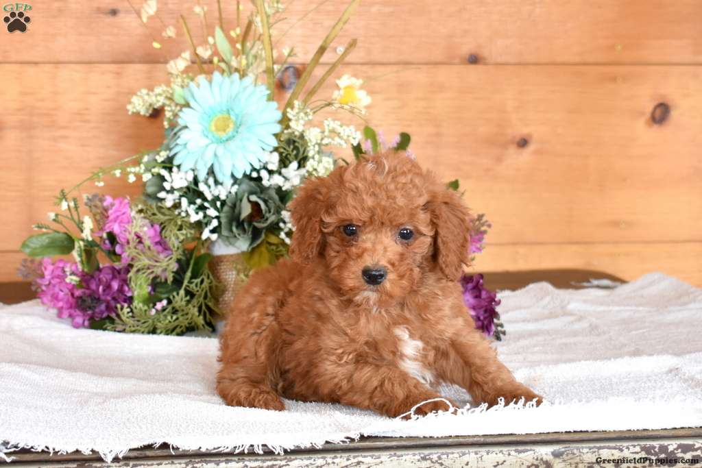 Jimmie is a curly and cute Miniature Poodle puppy who loves to play! This sweet boy comes home with a 30 day health guarantee and an extended genetic health guarantee, both provided by the breeder. Jimmie has been seen by a vet and is up to date on shots and de-wormer. This cutie-pie is socialized and family raised with children. Jimmie will be the best addition to his forever family!