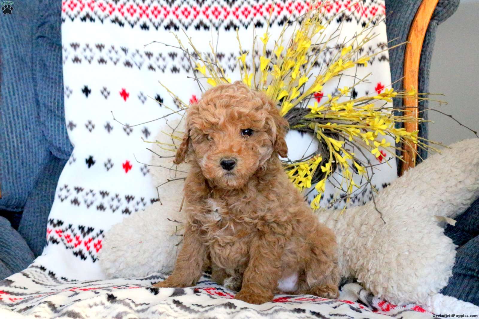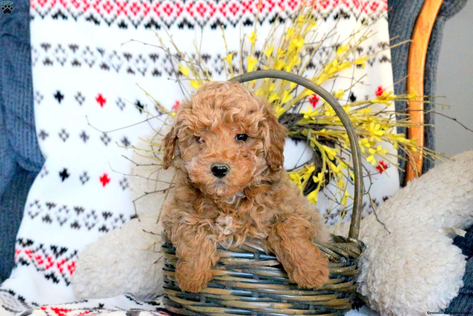 Link is a sweet natured Miniature Poodle puppy who can be registered with the AKC. This fun pup is well socialized, family raised with children, and ready to meet you! Link comes home with a 30 day health guarantee plus an extended genetic health guarantee, both provided by the breeder. This cutie has also been seen by a vet and is up to date on shots and de-wormer.