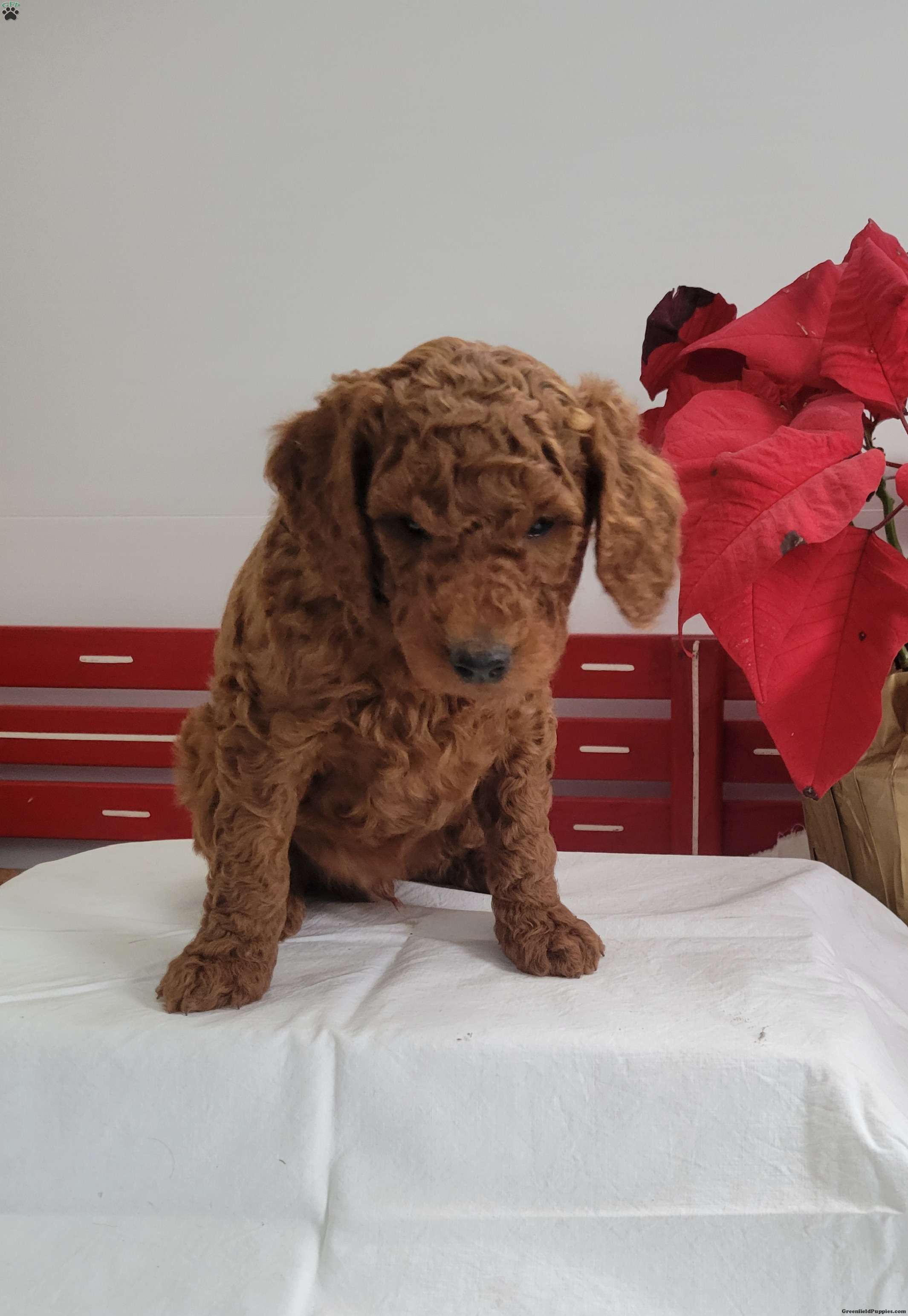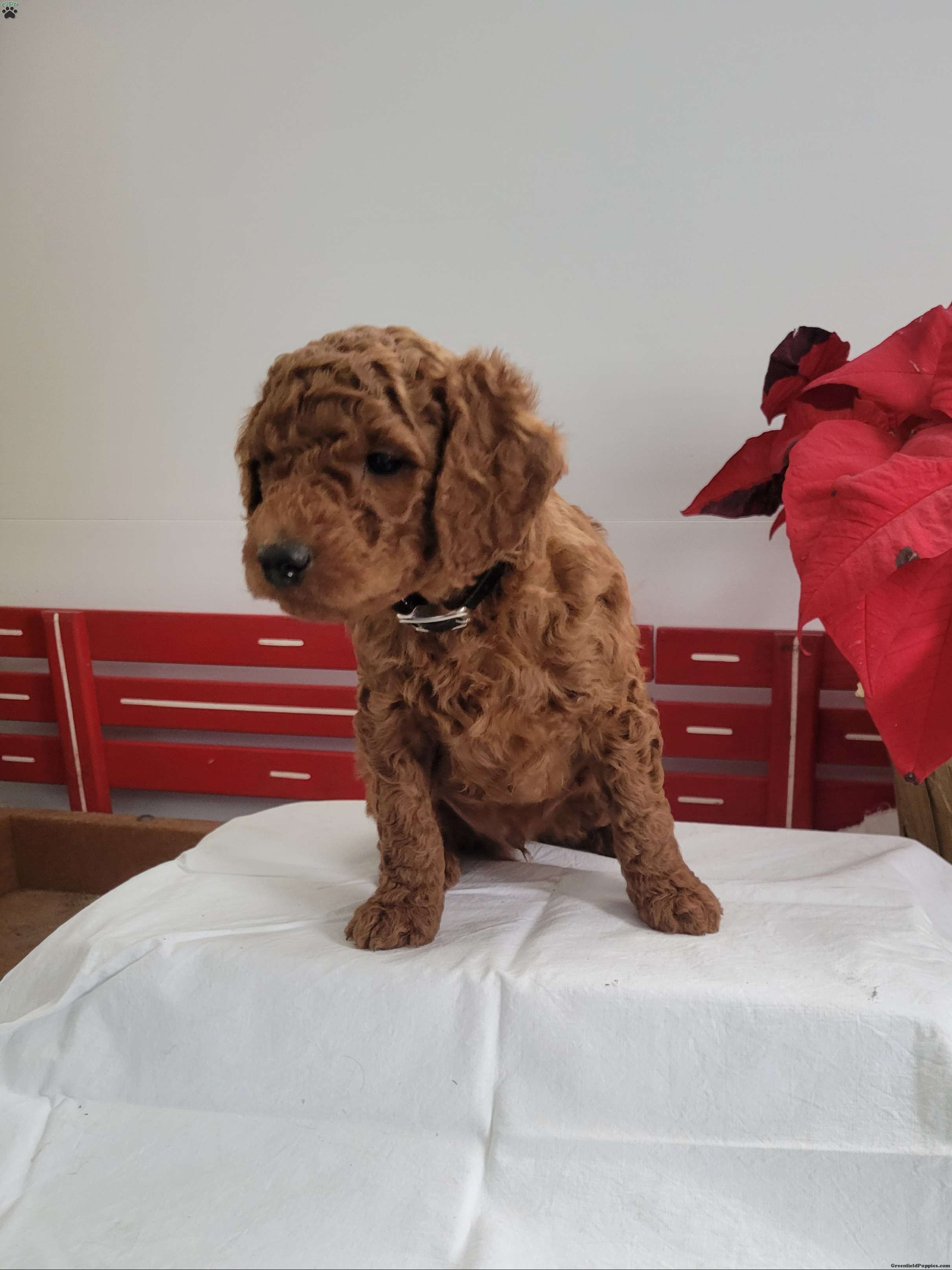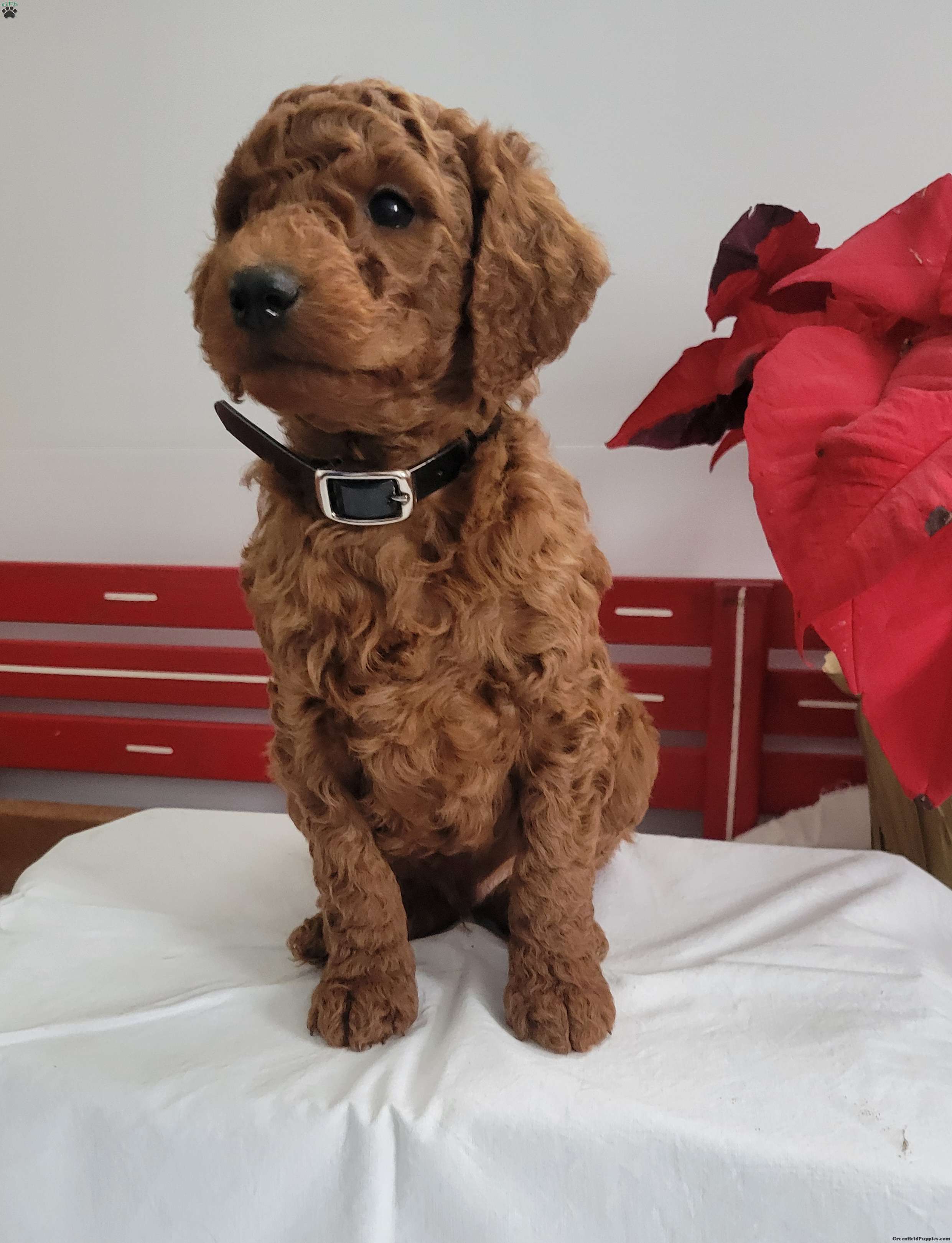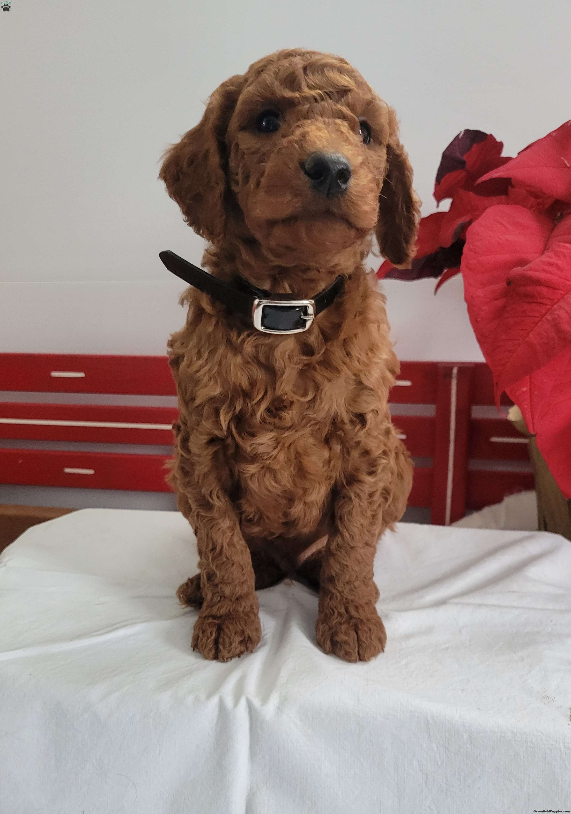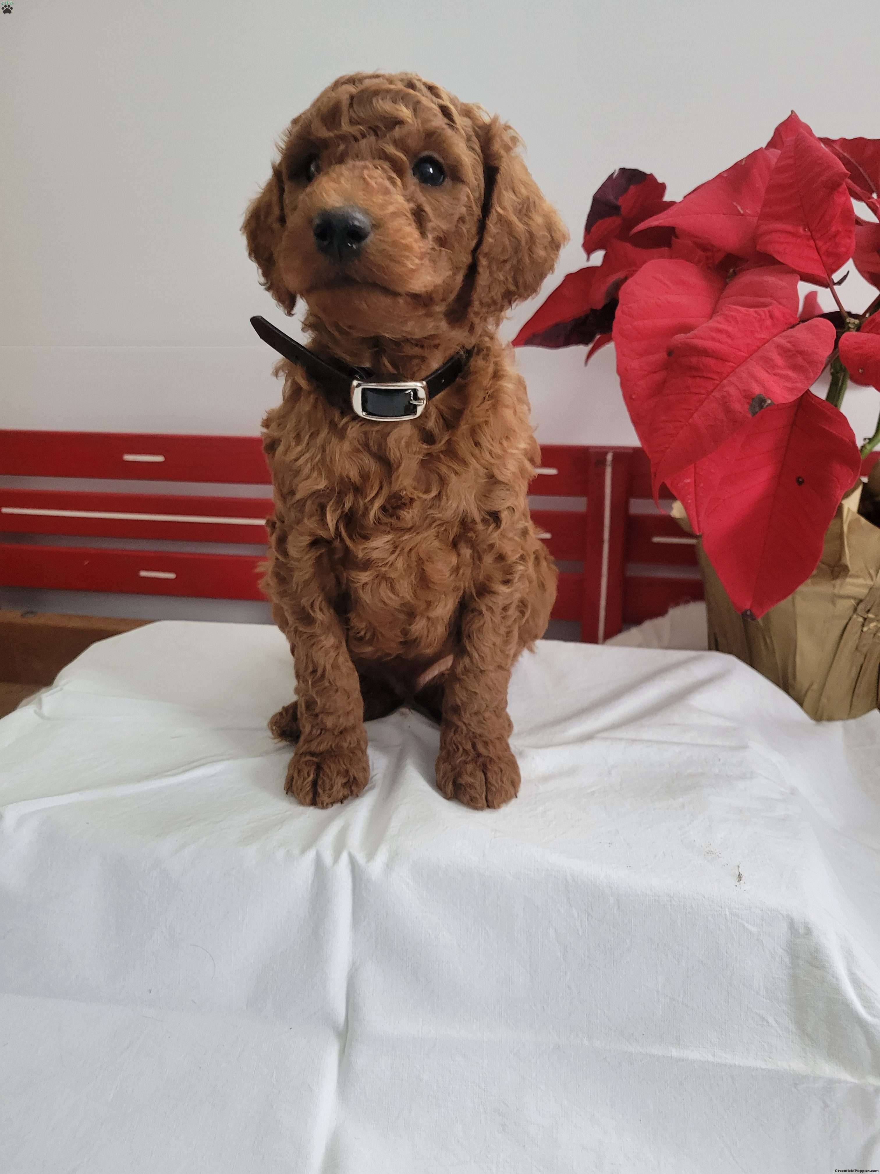 Reggie is a friendly, outgoing pup with a sweet temperament and playful personality. He was born on 01/01/2026. His dam is Rosie, an 18lb AKC registered miniature poodle who loves attention, and his sire is Clifford an 18 lb AKC-registered miniature poodle. Reggie can be AKC registered.