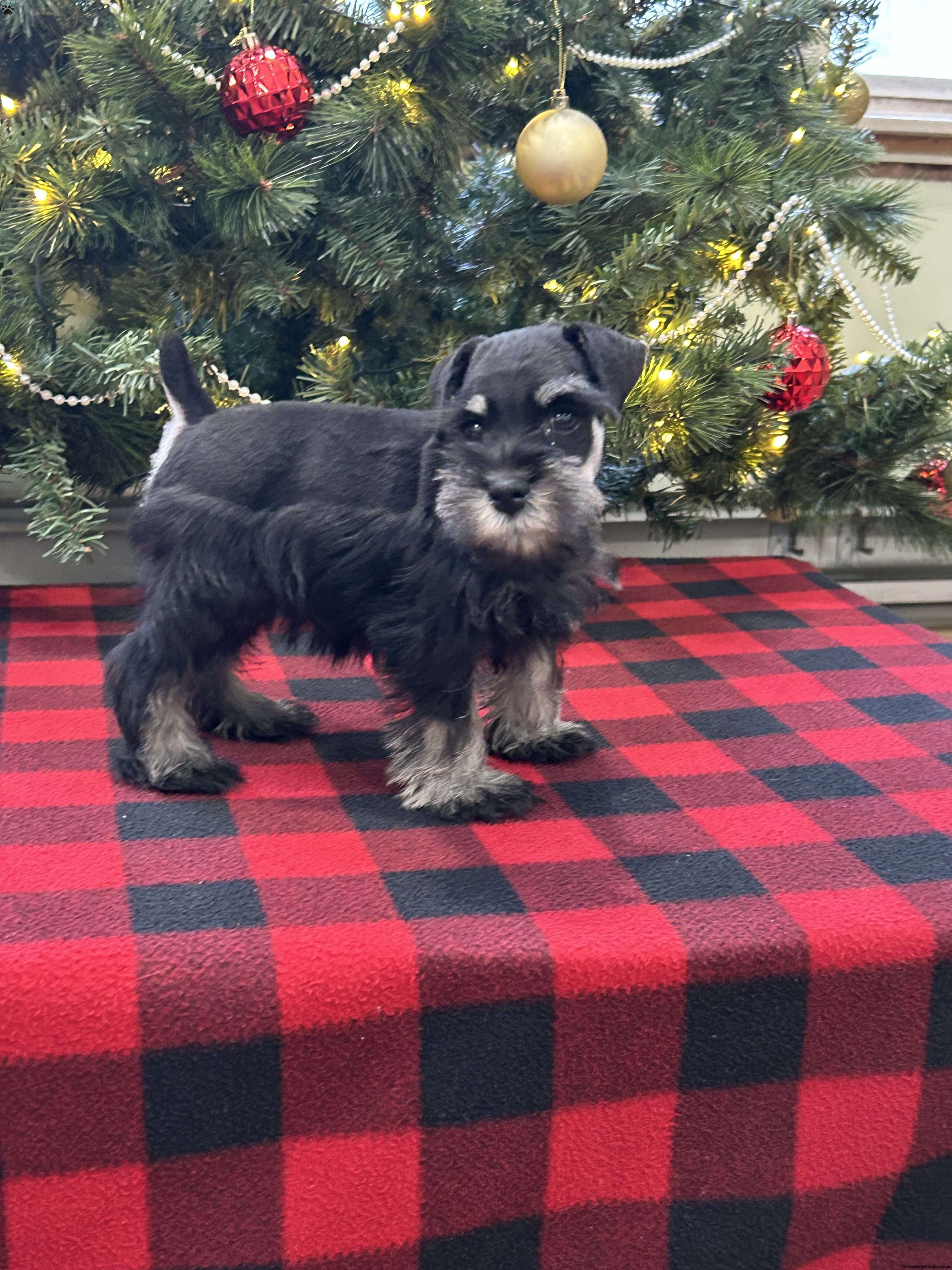 We are excited for you to meet Craven! This most adorable miniature schnauzer er. All our puppies come with Full AKC Registration, they are also microchipped, vet checked and up to date on all shots and dewormings.