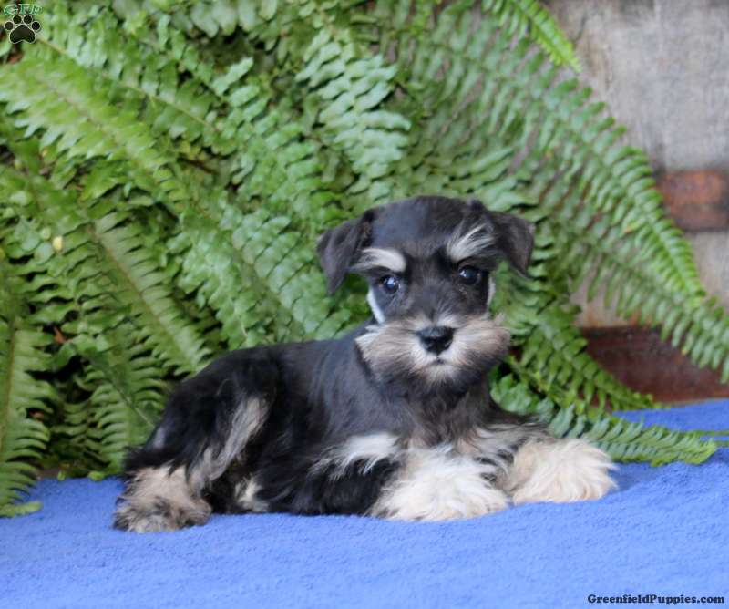 This puppy is no longer available. Go back to the Miniature Schnauzer Puppies page or check out our New Arrivals for more adorable puppies for sale!