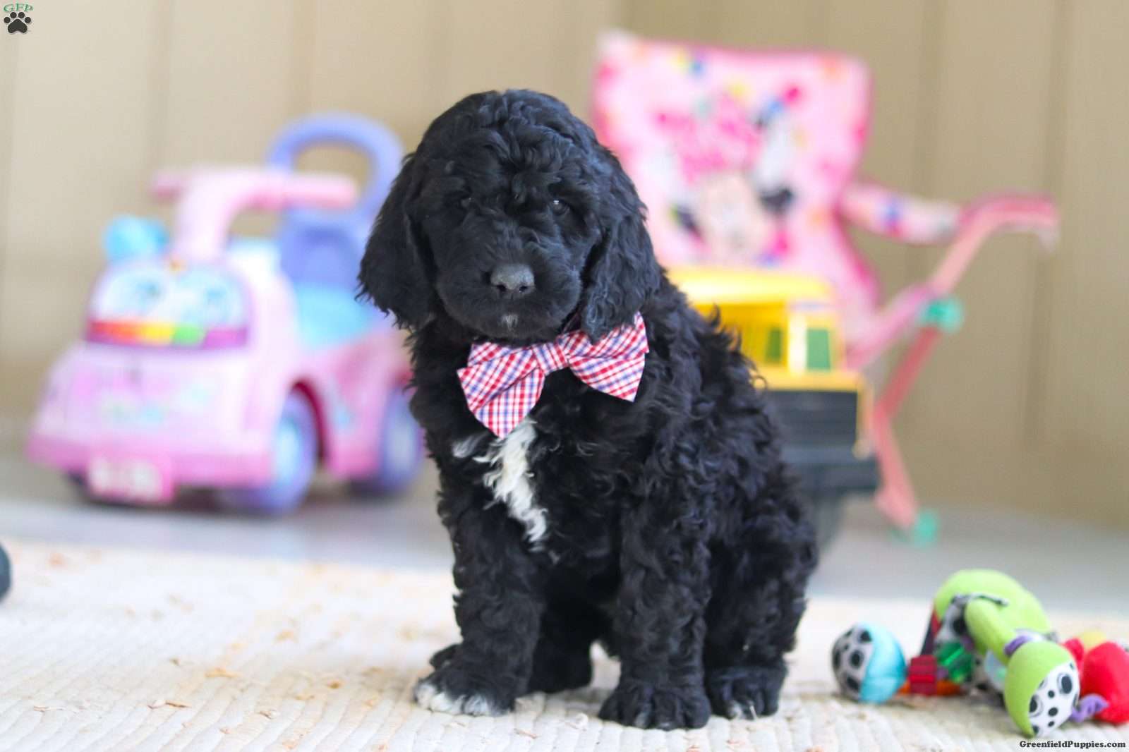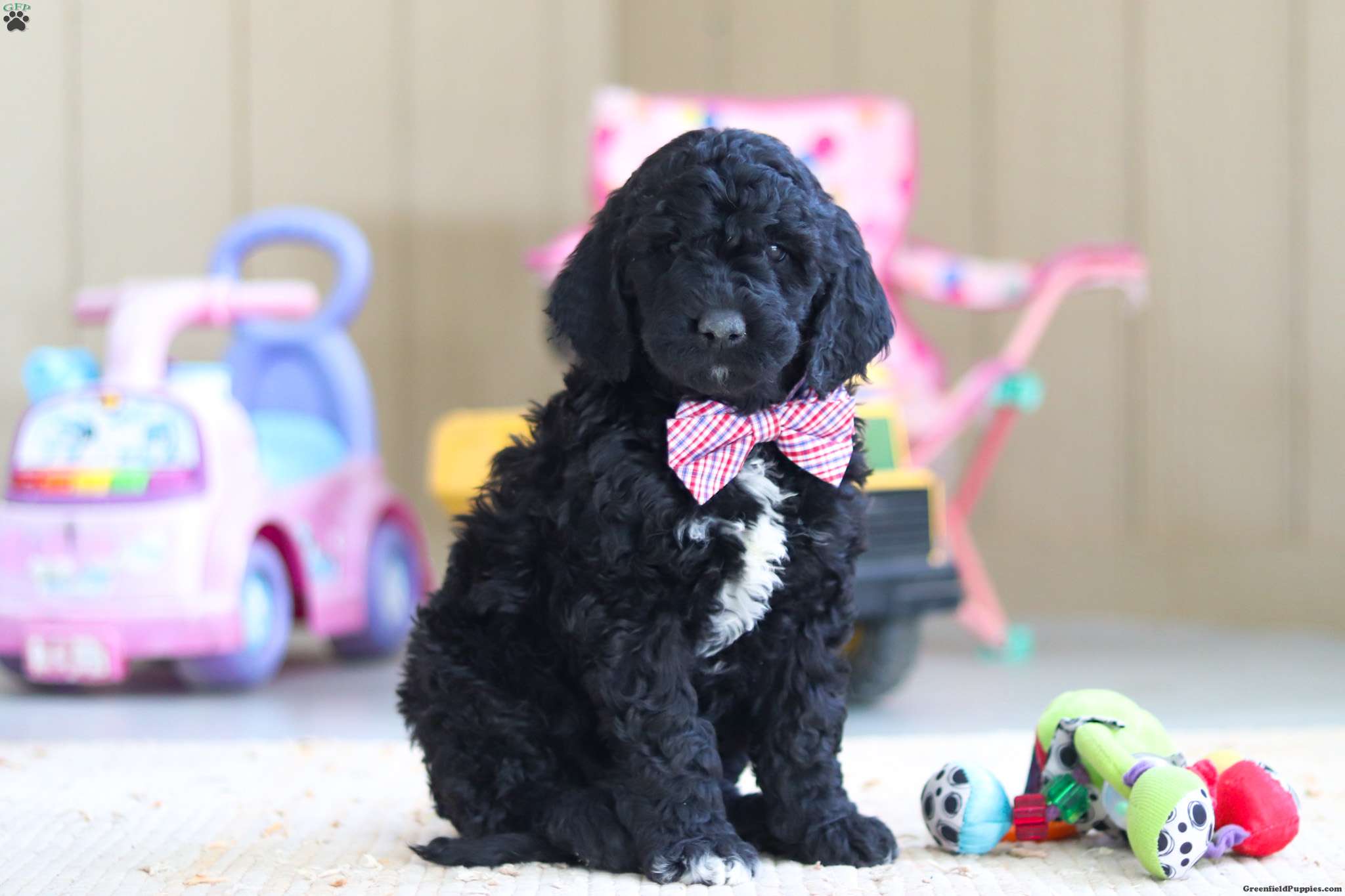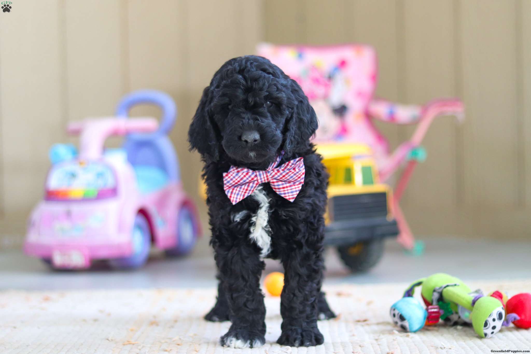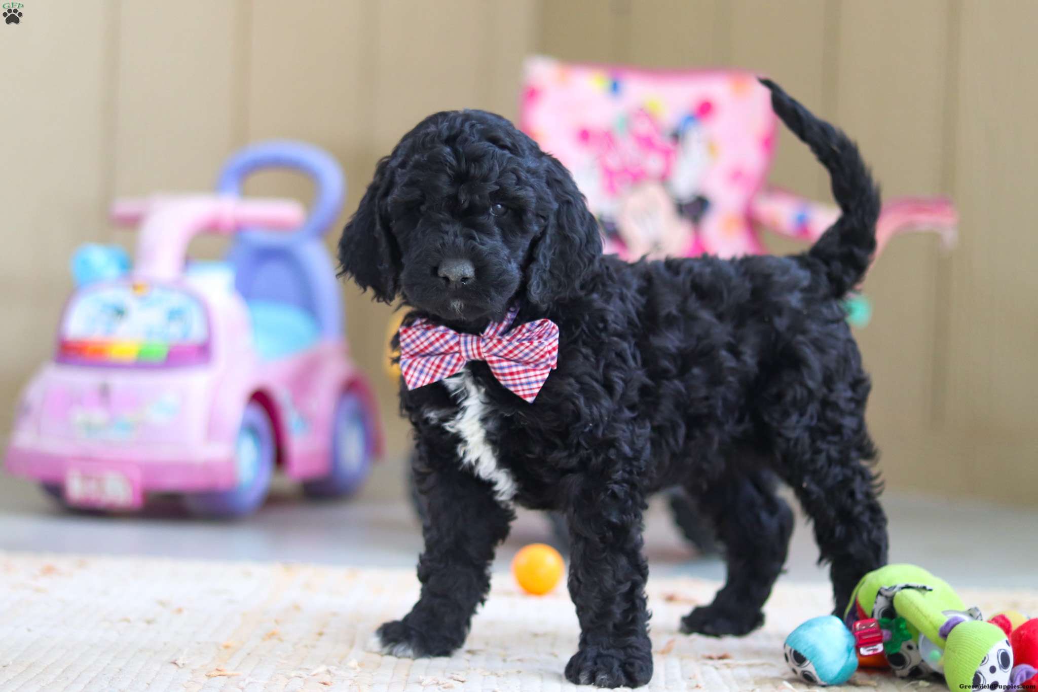 Meet Duncan— a truly stunning F1B Newfypoo puppy with a presence that turns heads! Not only is he strikingly beautiful, but he also carries himself with confidence and charm. His vibrant personality shines just as bright as his good looks. Whether he’s joining you for a walk, learning a new trick, or curling up for a cozy nap, he’ll be happiest right by your side. His curious nature and playful spirit are sure to keep you smiling as he eagerly explores the world around him. Blending the best traits of both breeds, he embodies the loyalty and sweetness of the Newfoundland with the intelligence and outgoing nature of the Poodle—making him the perfect mix of affection and fun! He will come home with: • His first vet exam already completed • Up-to-date vaccinations and deworming • A 2-year genetic health guarantee • A 30-day general health guarantee He comes from exceptional parents who have both been genetic health tested and cleared of all breed-relevant conditions. This ensures his lineage is free from known hereditary issues commonly found in either breed, giving you extra peace of mind about his long-term health and well-being. His mama, Brooke, is an F1 Newfypoo weighing around 100 lbs. She’s sweet, smart, and playful, with a gentle nature that wins hearts everywhere she goes. His dad, Finn, is a 65-lb purebred Standard Poodle with a spirited personality and a love for people. Both parents are excellent examples of their breeds—healthy, intelligent, and affectionate—which is reflected in his confident, well-balanced temperament. For more information or to schedule a visit, feel free to call or text Kevin & Susan at (Monday through Saturday). Thank you! All puppies picked up at our location are subject to a 7% sales tax, as required by state law.