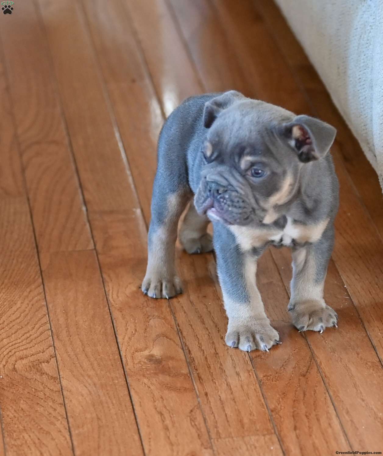 Hello we have an Olde English Bulldogge Male pup available. Max is blue tri in color. He will be a show stopper. He comes from an excellent pedigree. Max will come vet checked, first shots, dewormed, health certificate, one year health guarantee, IOEBA registered. He has been family raised and not aggressive. Please contact if interested.