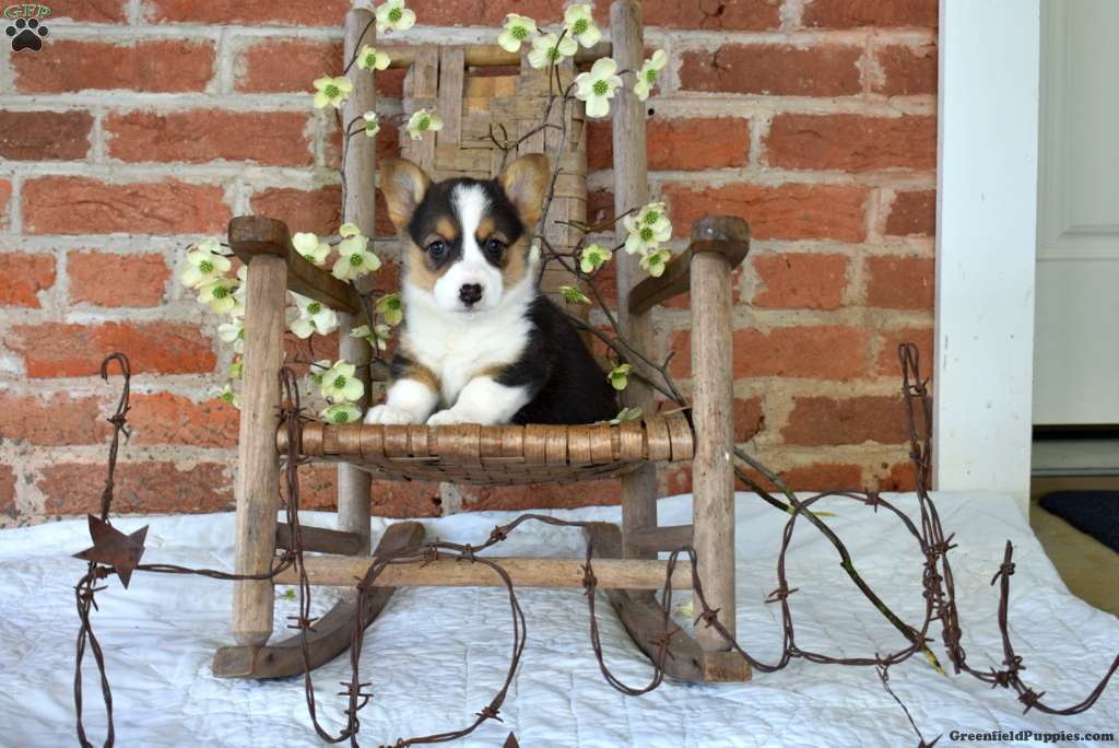 Here is a lovable Pembroke Welsh Corgi puppy who is socialized, family raised with children, and ready to be adored by you! Meadow likes to play and is so sweet! This cutie pie will be seen by a vet, kept up to date on shots and de-wormer, and comes home with a health guarantee provided by the breeder.