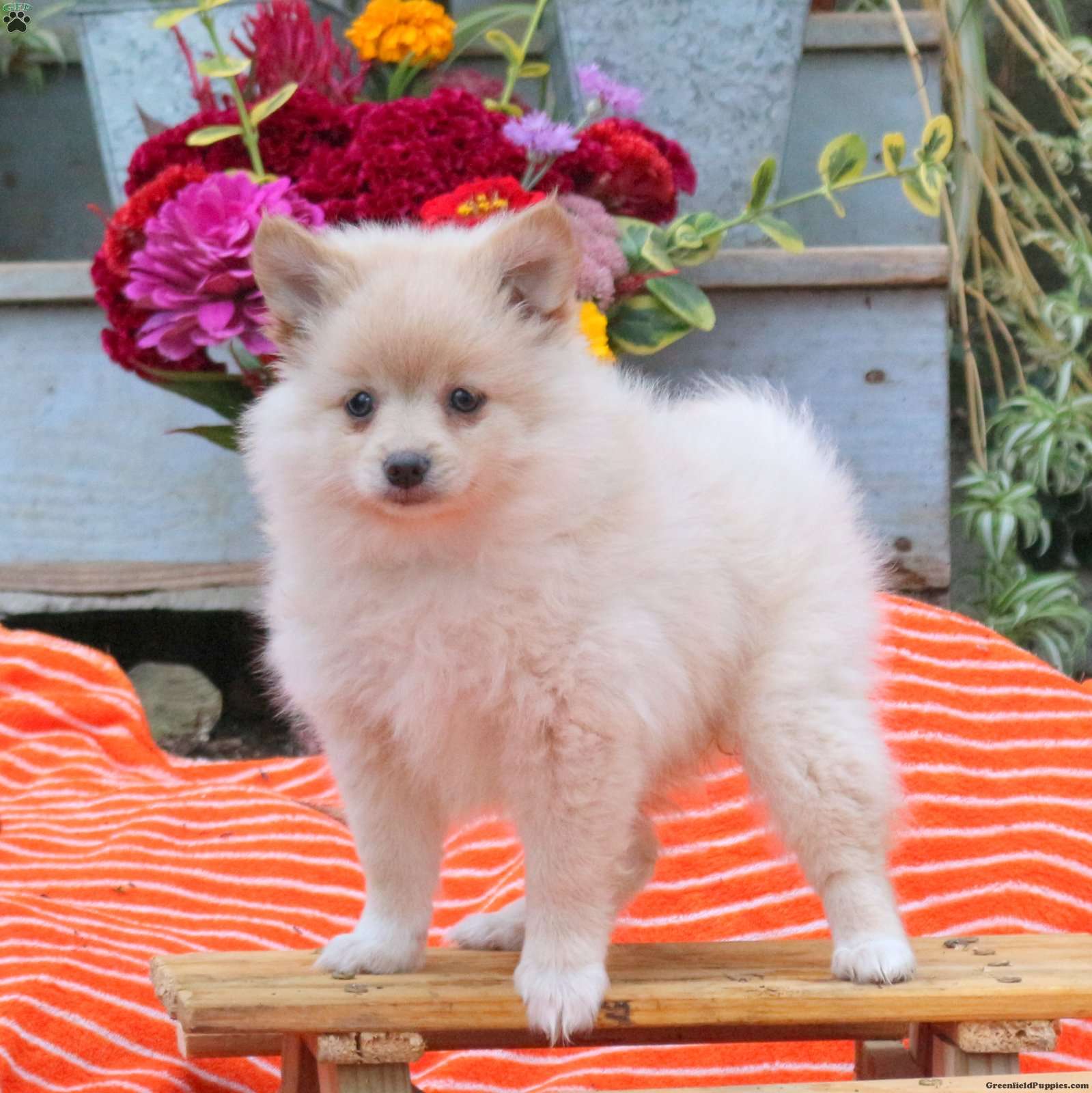 Babe is a spirited Pomeranian puppy with a giddy and fun personality! This cutie is well socialized, family raised with children, and great with the kids! Babe will be seen by a vet and kept up to date on shots and de-wormer, plus the breeder provides a health guarantee when this little sweetheart heads home.