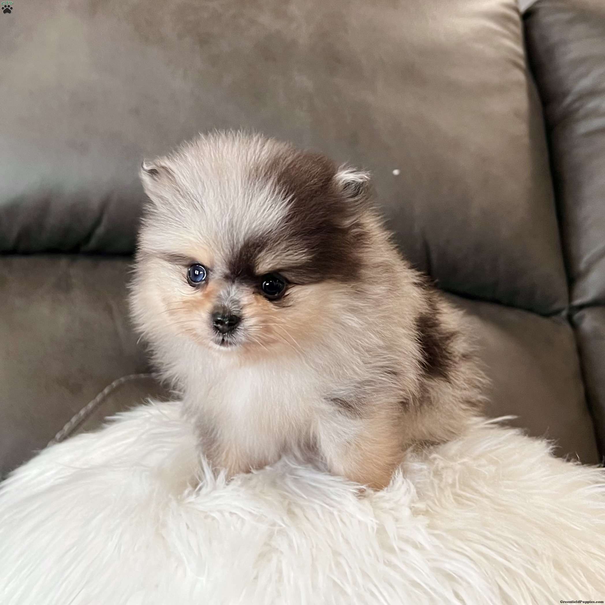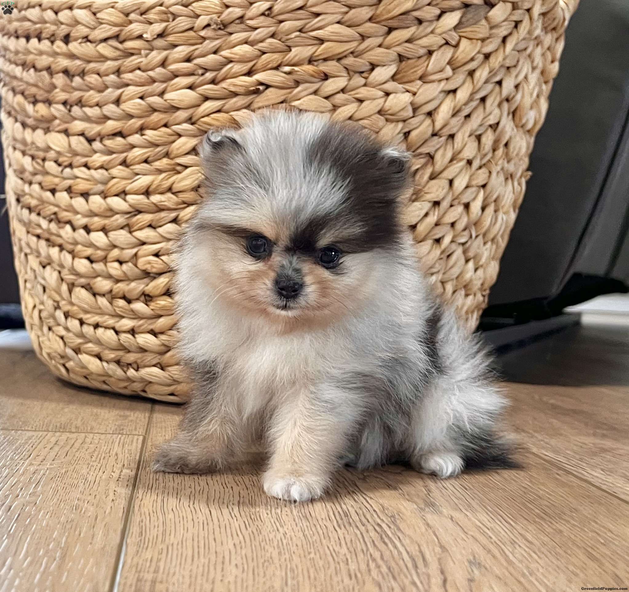Hi there! I’m Peanut, a tiny purebred AKC registered Pomeranian boy with a teddy bear face, thick fluffy coat, rare black tan point merle coloring, and to make me extra special… I have ONE bright blue eye and three little feet with cute white toes I’m currently charting to be under 5 pounds full grown, which makes me the perfect purse puppy you can carry along everywhere you go! I’m being raised in a loving home with lots of cuddles and daily handling. I’m sweet, playful, and absolutely love people Here’s a little about me: Purebred AKC Registered One Blue Three Feet With White Toes Charting Under 5 lbs Teddy Bear Baby Doll Face Rare Black Tan Point Merle Color Thick Fluffy Coat Family Raised & Well Socialized Up To Date On Vaccines & Deworming Vet Checked Health Guarantee Included I’m ready to find my forever family and become your tiny sidekick! Delivery Available right to your door! Message my humans for more info or to add me to your family! Tiny, flashy, blue-eyed purse pups like me don’t come around often — don’t miss out!