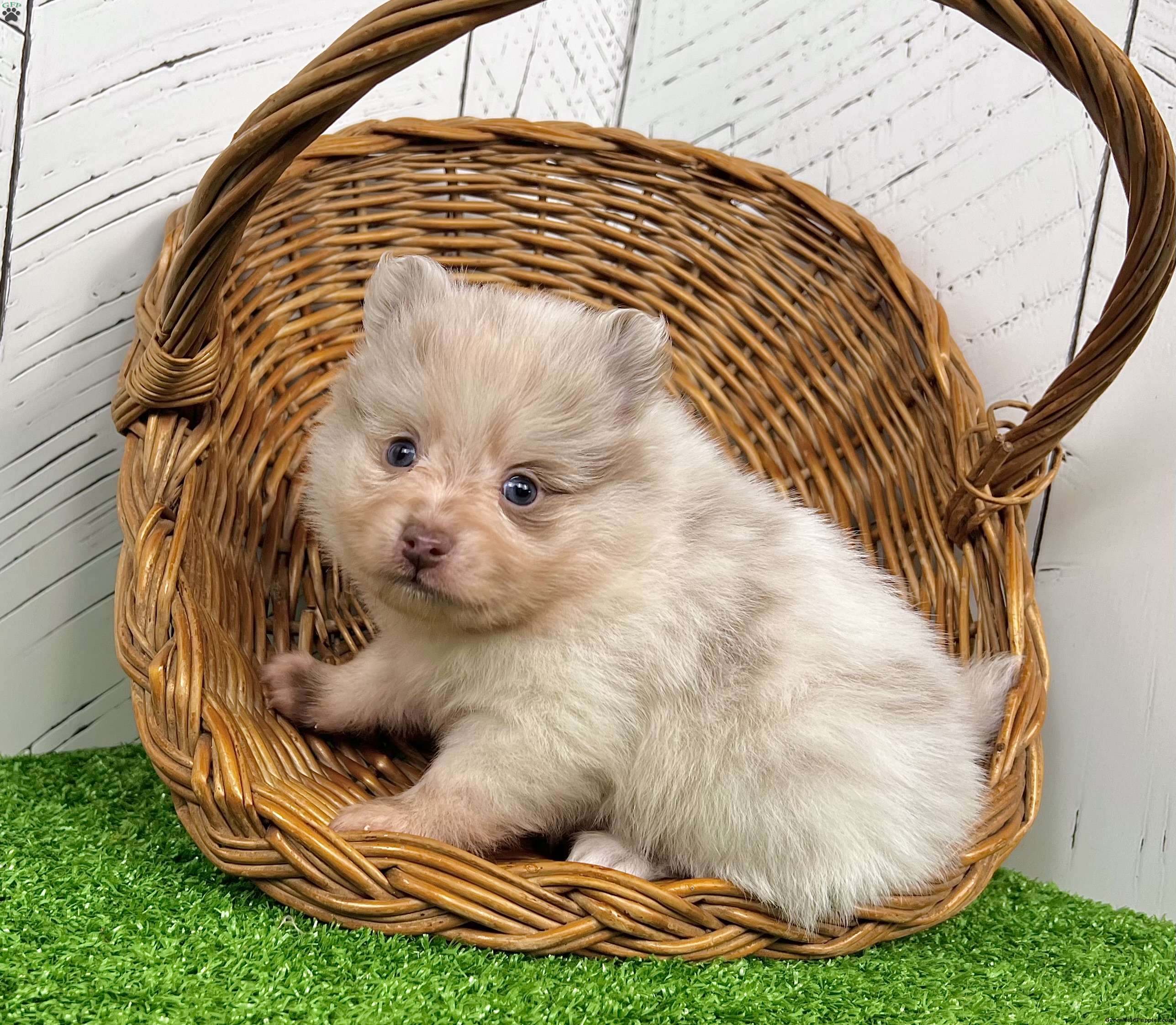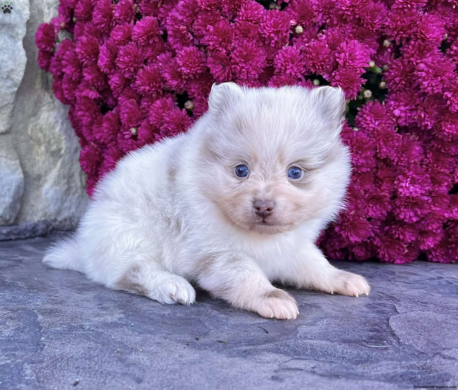 Hey there! My name is Smarty, and I’m a quality little purebred AKC registerable Pomeranian with a super rare lavender Merle coat that sparkles in every light! People tell me I look like a fluffy little marshmallow with a splash of magic — and I think they’re right. I have bright blue eyes, and everyone says they make me look extra smart… which is probably how I got my name! And my coat is really thick and fluffy! I’m playful, sweet, and love being cuddled. I’ve been family raised and socialized, so I’m used to people loving on me all day. I can’t wait to share all my wiggles, kisses, and happy dances with MY person. My Important Info: • Breed: Purebred AKC Pomeranian • Color: Rare Lavender Merle • Eyes: Blue (my favorite feature!) • Birthdate: September 19, 2025 • Vet Care: Vet checked and Up to date on shots & dewormings • Extras: I come microchipped with a health guarantee • Social: Family raised, friendly, and ready to bond! If you’re looking for a tiny pup with a huge personality… pick me! I’m ready to make your home happier, brighter, and way more adorable. I can even be delivered right to your door! Call or text my humans to meet me