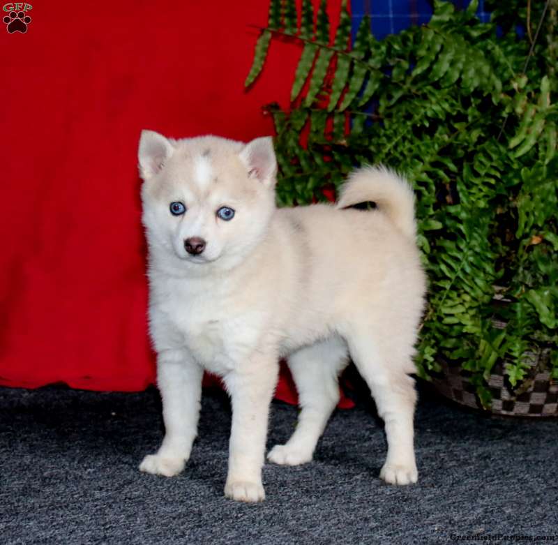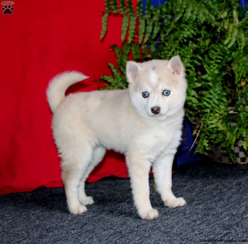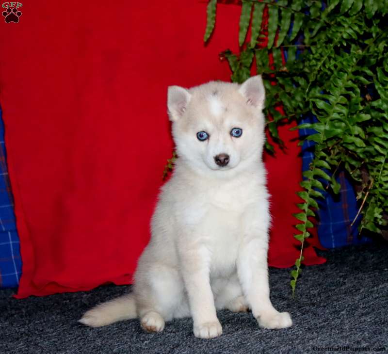 Fancy is a smart Pomsky puppy who is socialized and sweet as can be! This cutie is ready to be adored by you! Fancy will come home with a 30 day health guarantee as well as an extended genetic health guarantee, both provided by the breeder. This precious pup has also been seen by a vet and is up to date on shots and de-wormer.