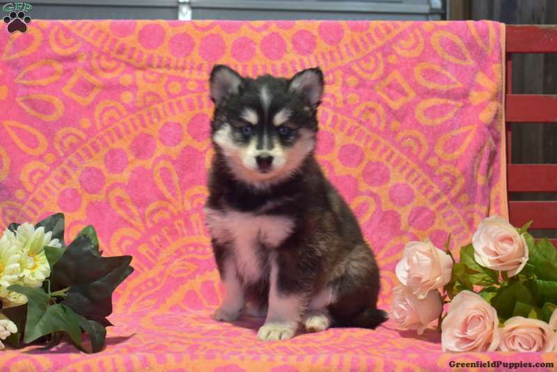 Twila is a playful Pomsky puppy available to a forever family. This cutie comes home with a health guarantee provided by the breeder, plus has been seen by a vet and is up to date on shots and de-wormer. Twila is sweet natured, socialized, and family raised with children. This fluffy pup is ready to meet you!