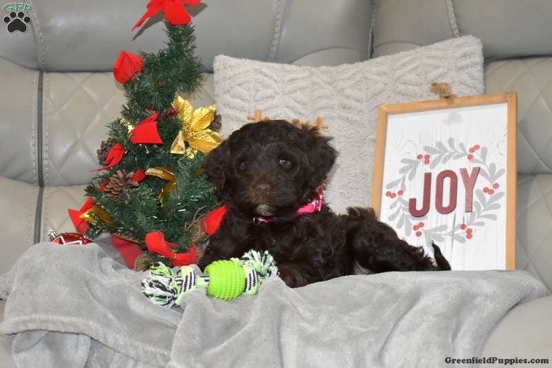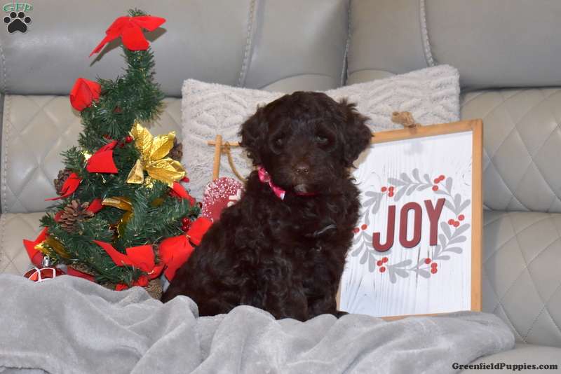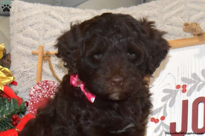 Here is a sweet tempered Portuguese Water Dog puppy who is socialized, family raised with children, and ready to meet you! Cinnamon comes home with a 30 day health guarantee provided by the breeder plus has been seen by a vet and is up to date on shots and de-wormer. This playful pup can also be registered with the AKC. Cinnamon is great with kids and will be a lovable addition to her forever family!