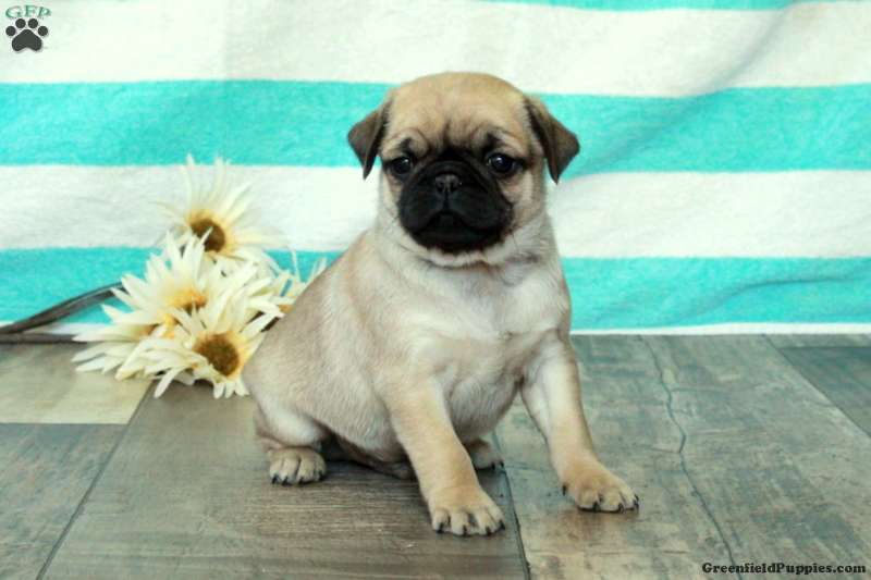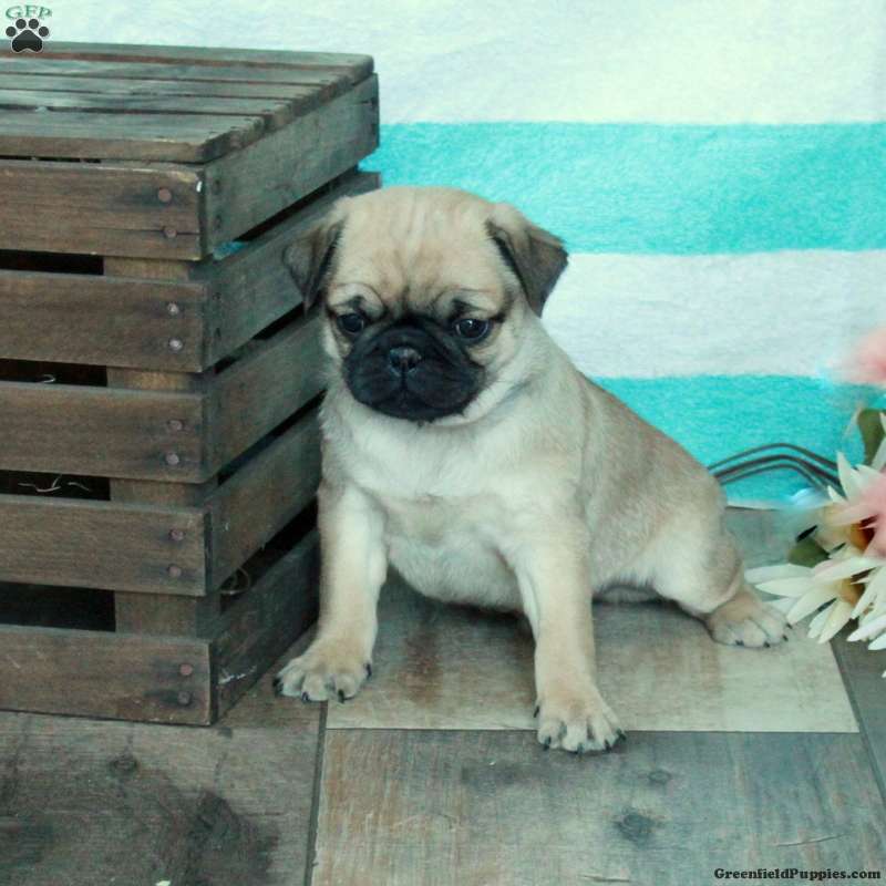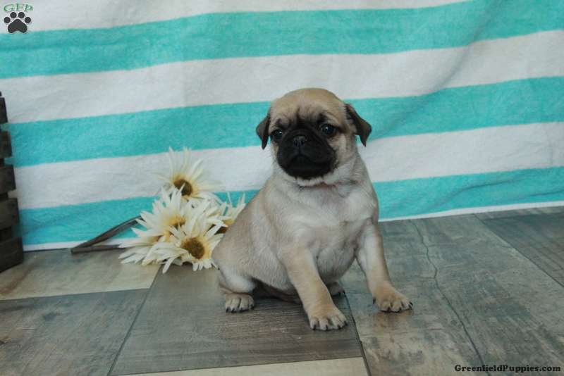 This precious Pug puppy has a spirited and sweet disposition! Calvin is lovable, socialized, and ready to meet you! Vet checked and up to date on shots and de-wormer, this adorable pup comes home with a 30 day health guarantee provided by the breeder. Calvin will be a playful companion!