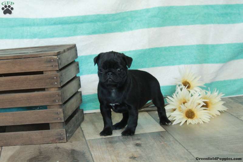 This precious Pug puppy has a spirited and sweet disposition! Cece is lovable, socialized, and ready to meet you! Vet checked and up to date on shots and de-wormer, this adorable pup comes home with a 30 day health guarantee provided by the breeder. Cece will be a playful companion!