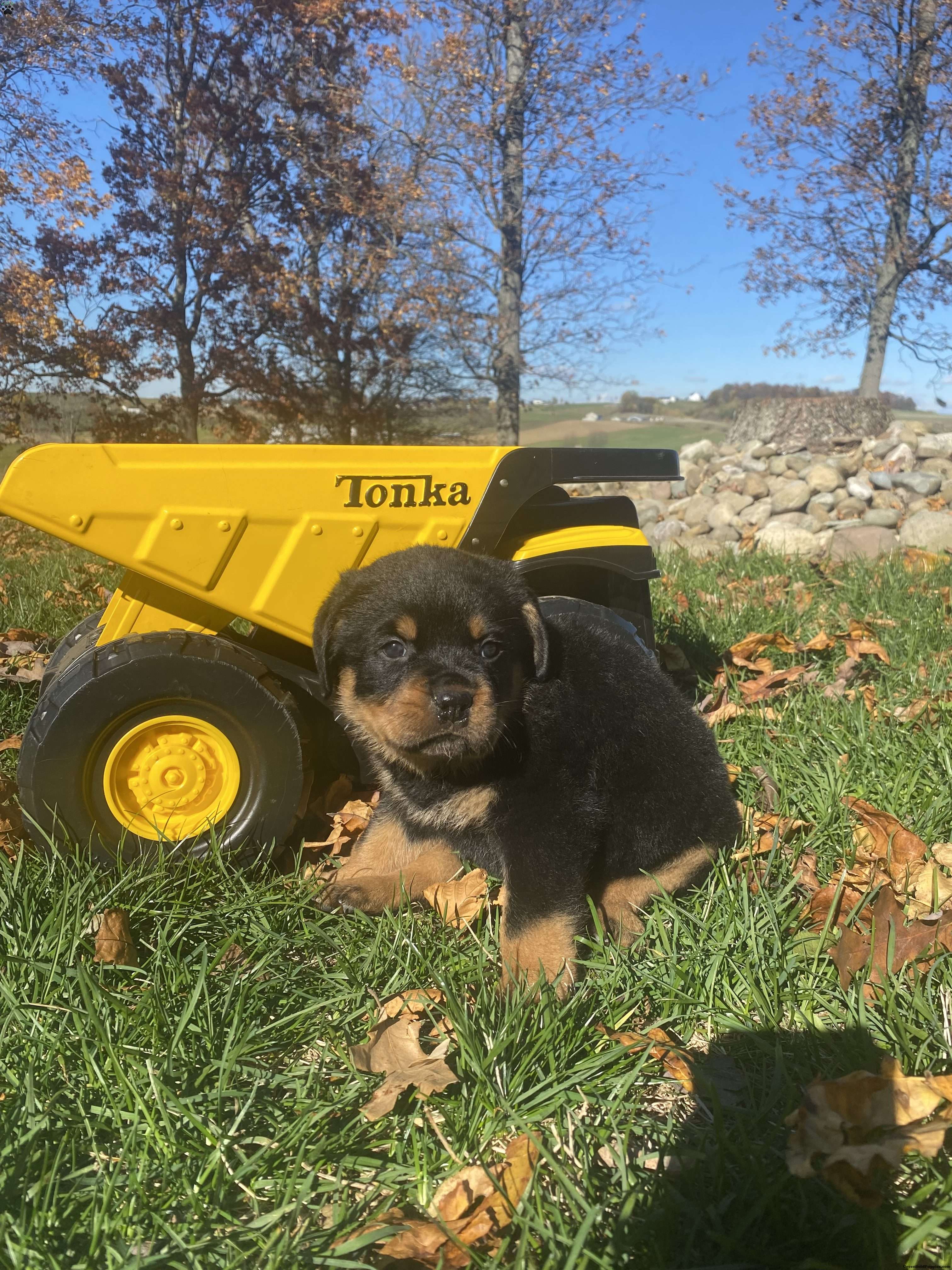 Meet this sweet pup!Henson is family raised on a mini farm and well socialized he is updated on current vaccinations and wormer he will be vet checked at 8 weeks old by a professional certified veterinarian, both parents are AKC registered Rottweilers.For more information contact us at your earliest convenience, all Sunday calls will be returned Mondays.
