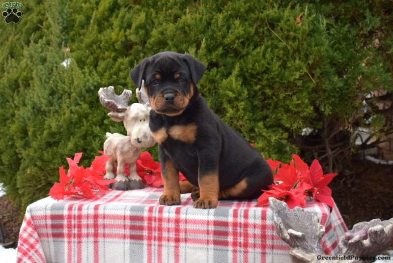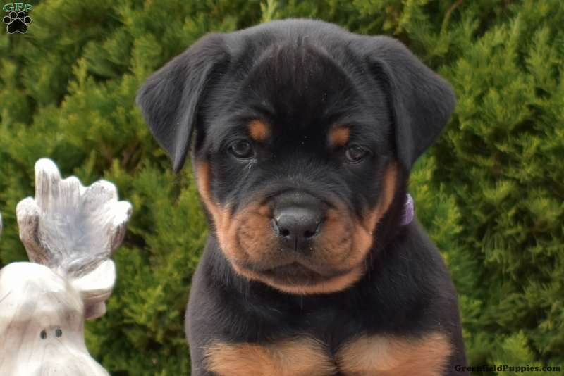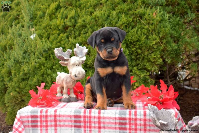 Lexi is a delightful Rottweiler puppy who loves to have fun! This playful girl can be registered with the AKC and comes home with a 30 day health guarantee and an extended genetic health guarantee, both provided by the breeders. Lexi has been seen by a vet and is up to date on shots and de-wormer. This sweetie is socialized, family raised, and ready to meet you!