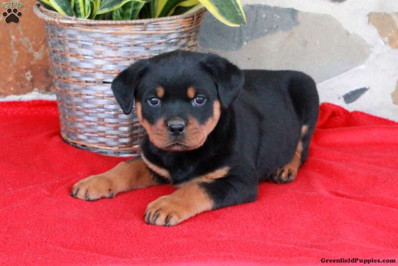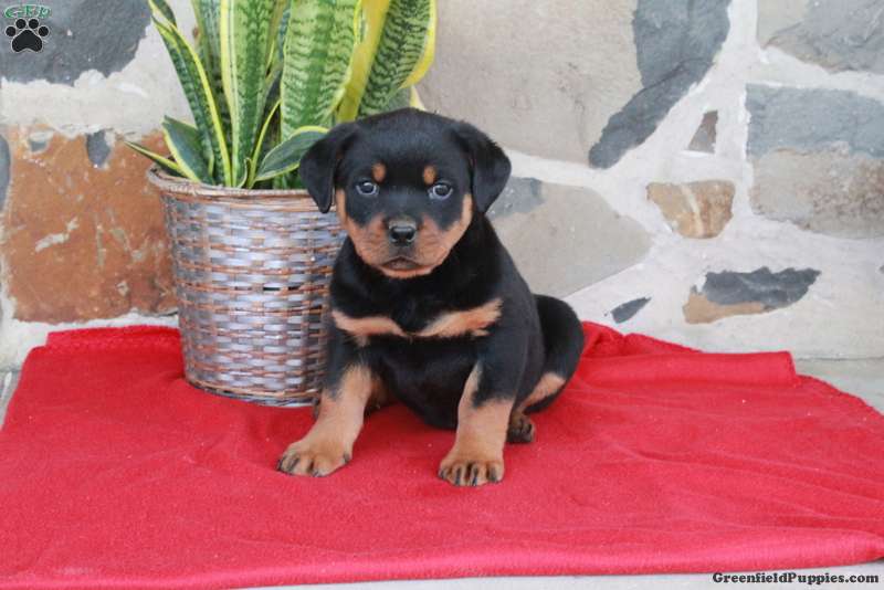 Stephanie is a lovable Rottweiler puppy with a sweet disposition. This cutie is playful, socialized, and ready to meet you! Stephanie can be registered with the AKC and comes home with a health guarantee provided by the breeder. She has also been seen by a vet and is up to date on shots and de-wormer.