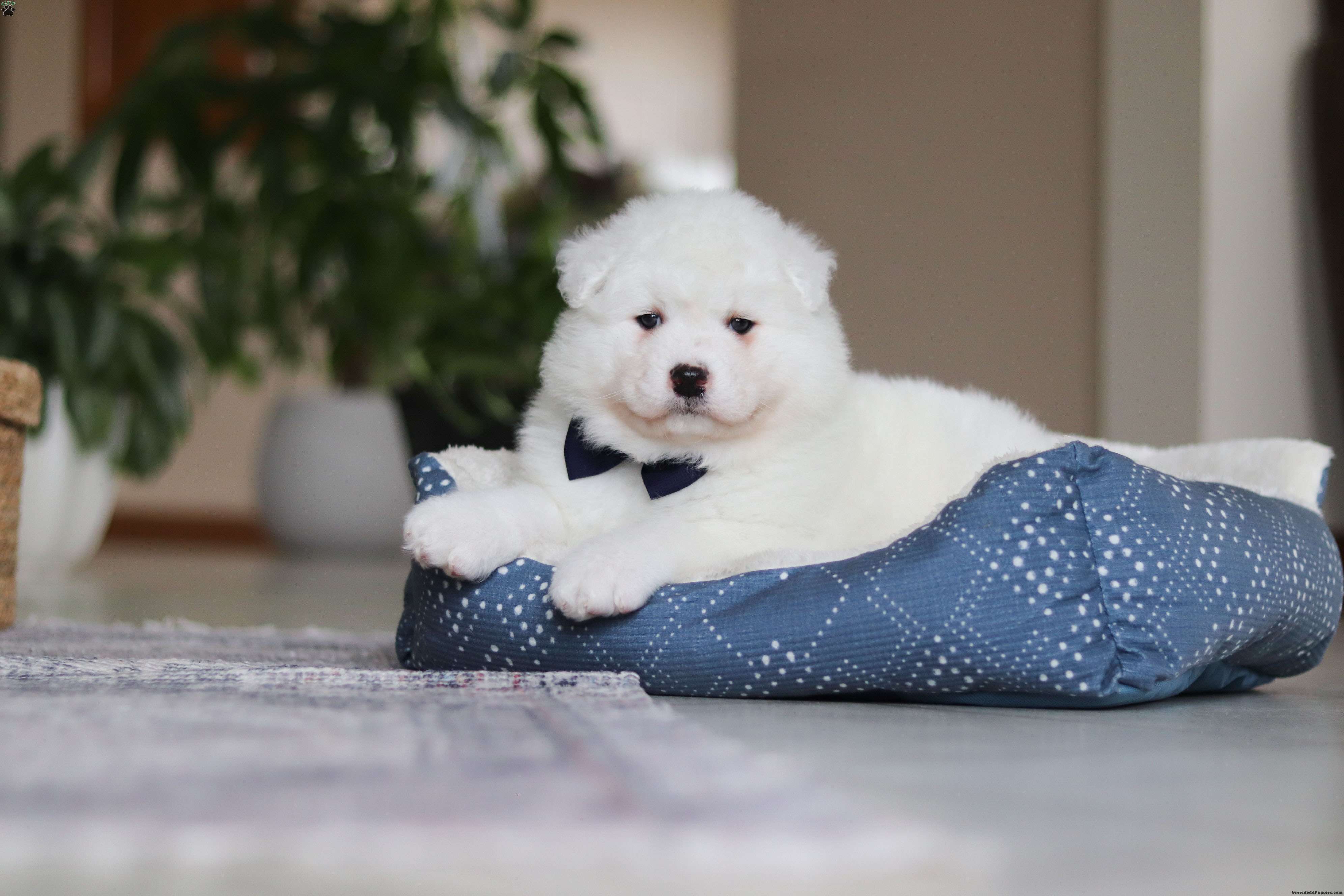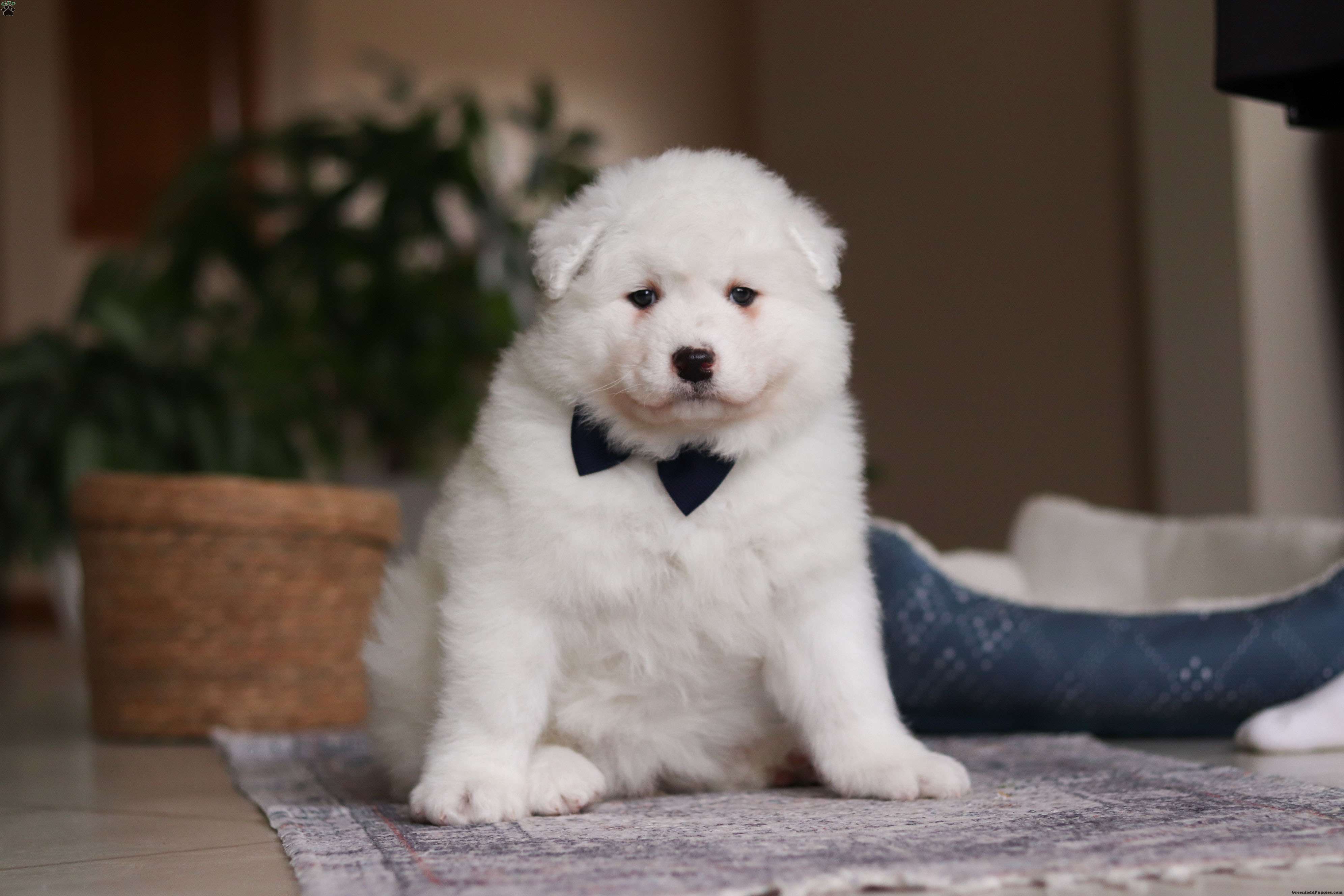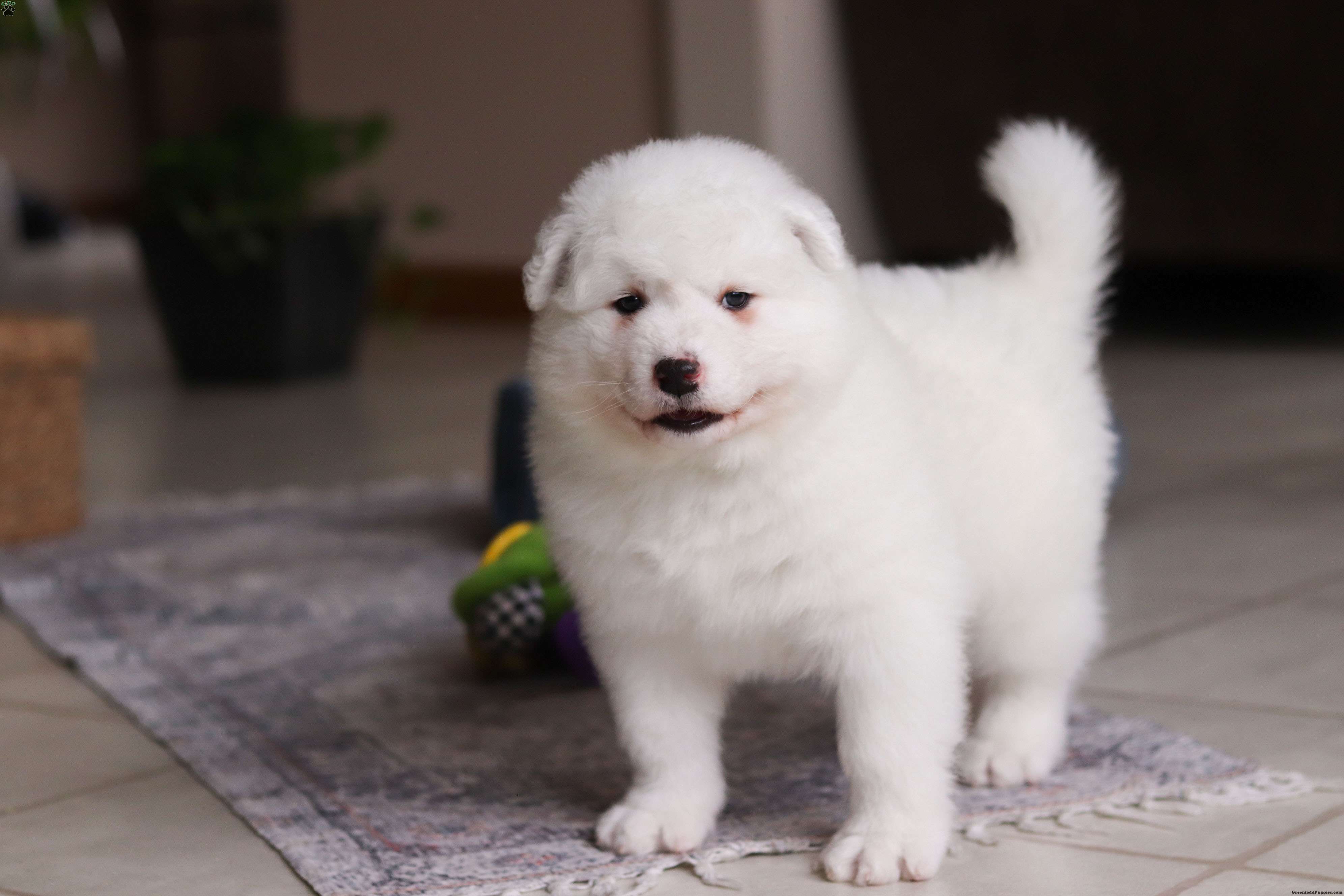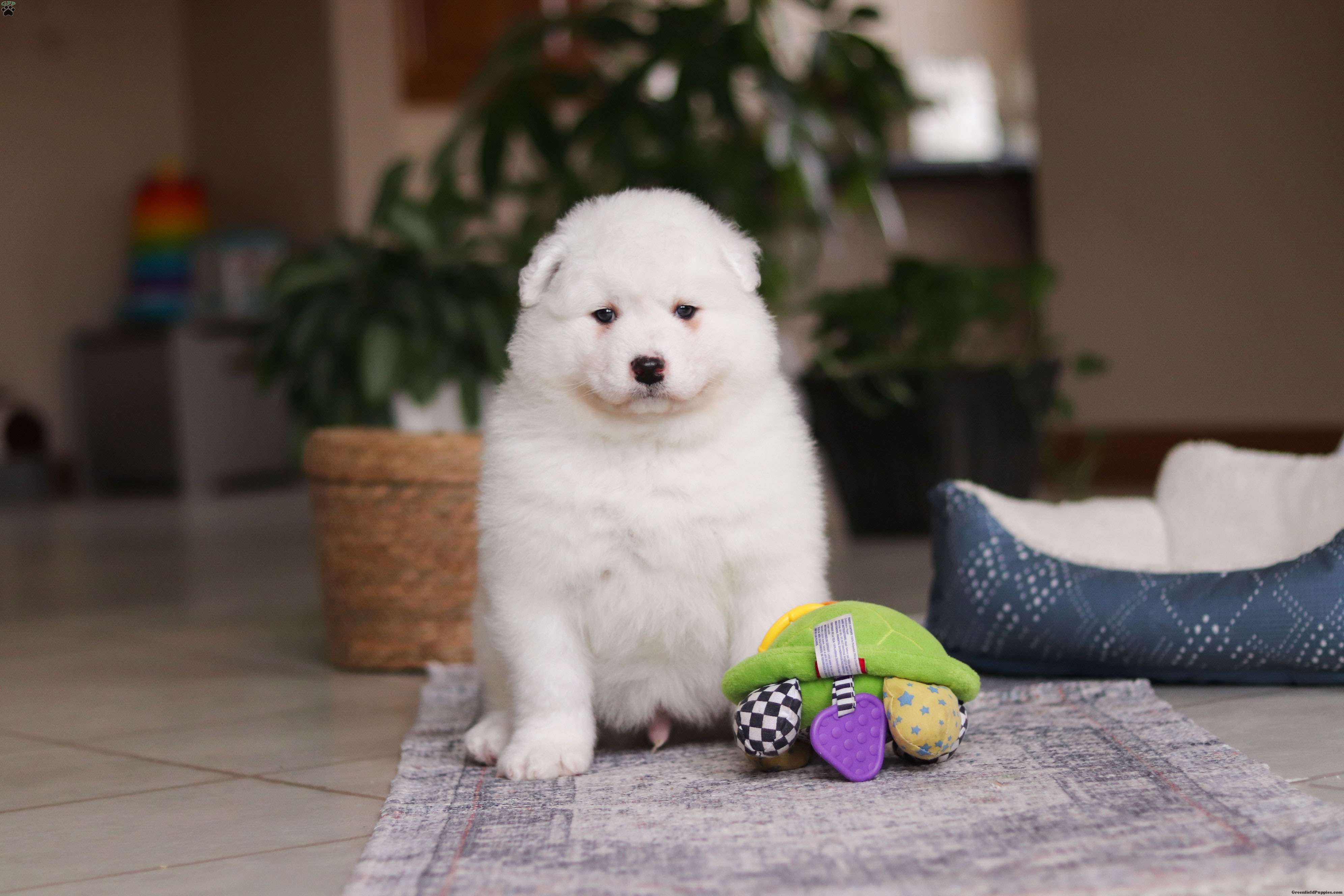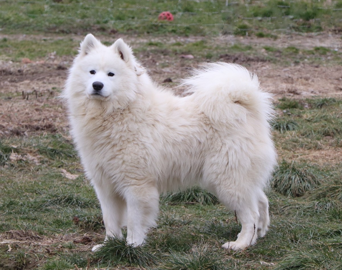 Meet Alvin, our delightful Samoyed puppy, who is ready to bring unwavering companionship and loyalty to your home. Alvin`s fluffy, snowy white coat is soft as a cloud, inviting endless cuddles and all the pets he can get. His bright, sparkling eyes always seem to be smiling, reflecting his playful and affectionate nature. This little boy is a bundle of joy, brimming with energy and a love for adventures. His playful spirit is contagious, and he easily entertains you for hours with his puppy antics. Despite his lively demeanor, this pup has a gentle and tender side, always ready for a snuggle session on the couch. His loving personality and irresistibly soft coat make his the perfect companion, always eager to spend time with his favorite people.