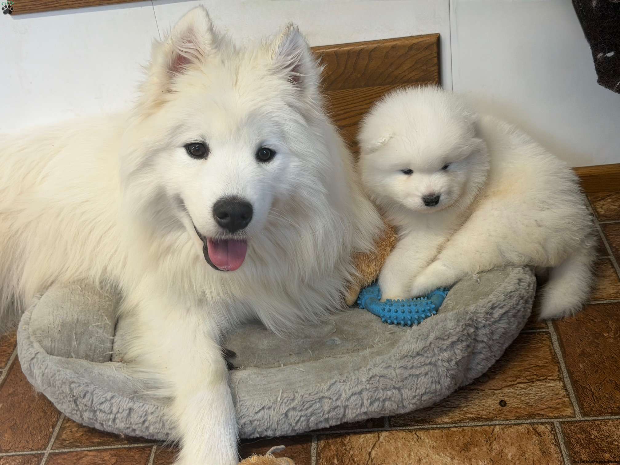 Meet Zane, a stunning Samoyed puppy! He is a very fun loving little guy and loves to hang out with his people and his playmates! Being the only boy in his litter he loves to show off 🙂 He loves hanging out outside and playing in the snow! His friendly, outgoing, and sometimes lazy nature make up the perfect personiality for a family with children or those that enjoy hiking and other outdoor activities!