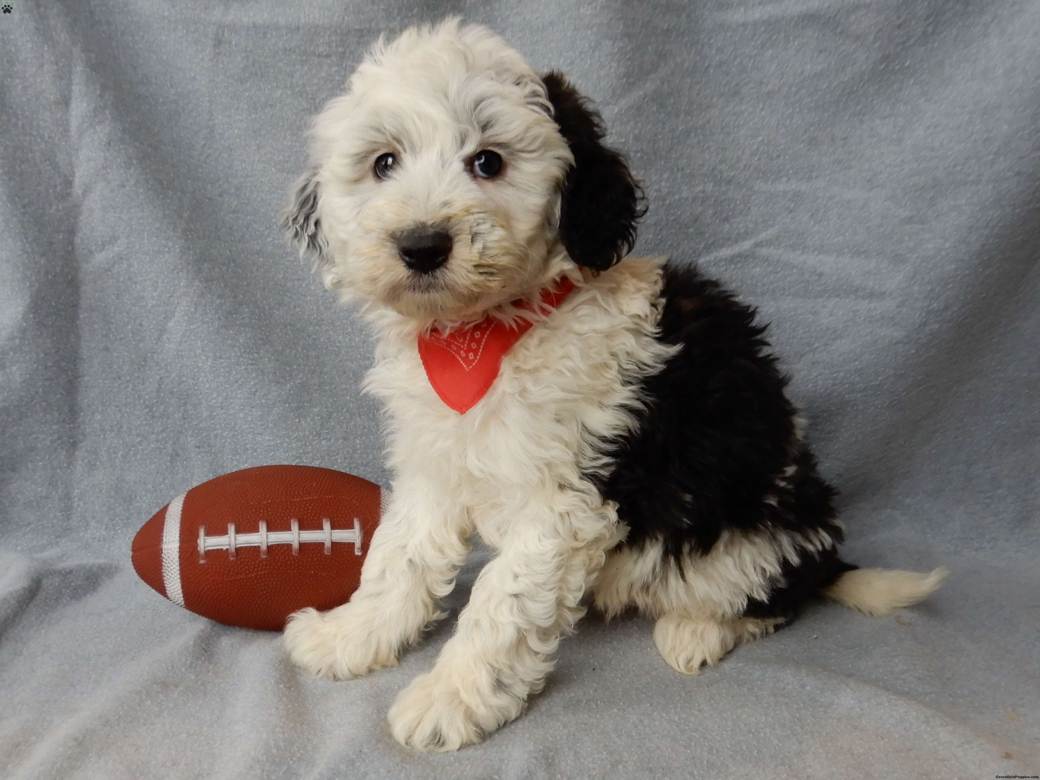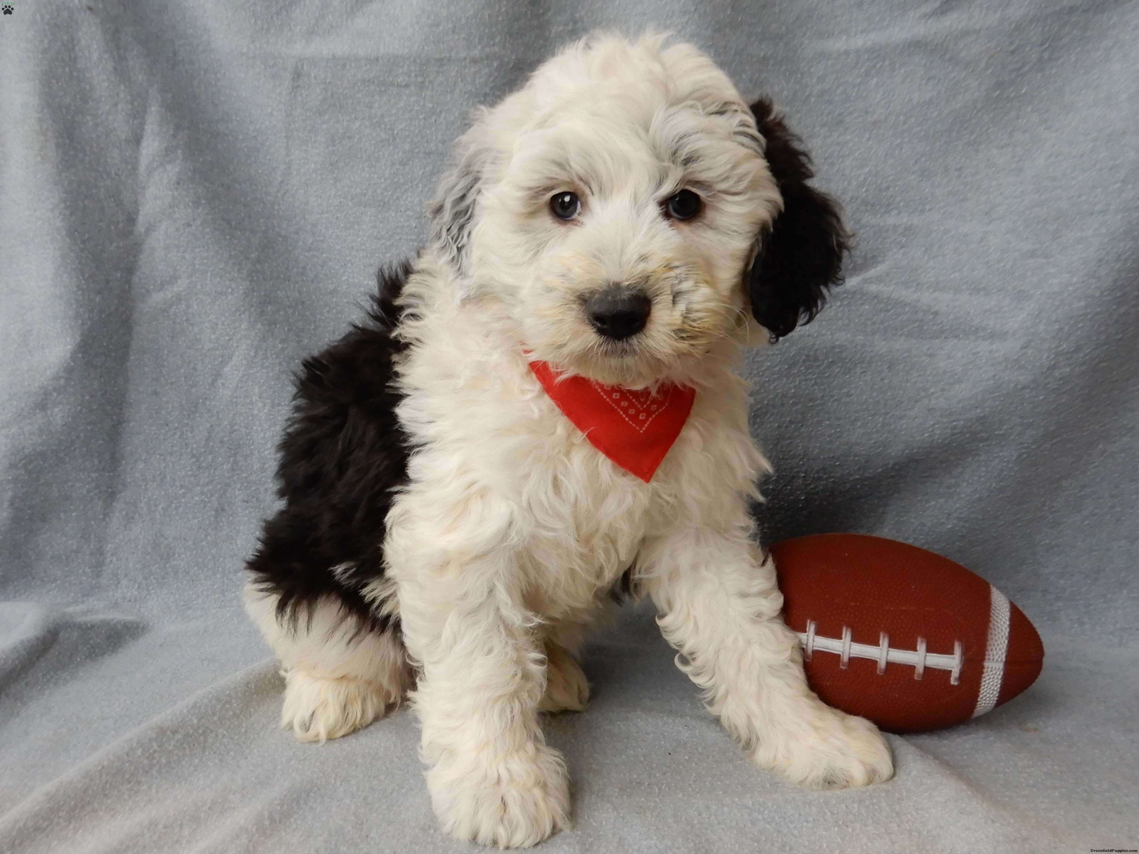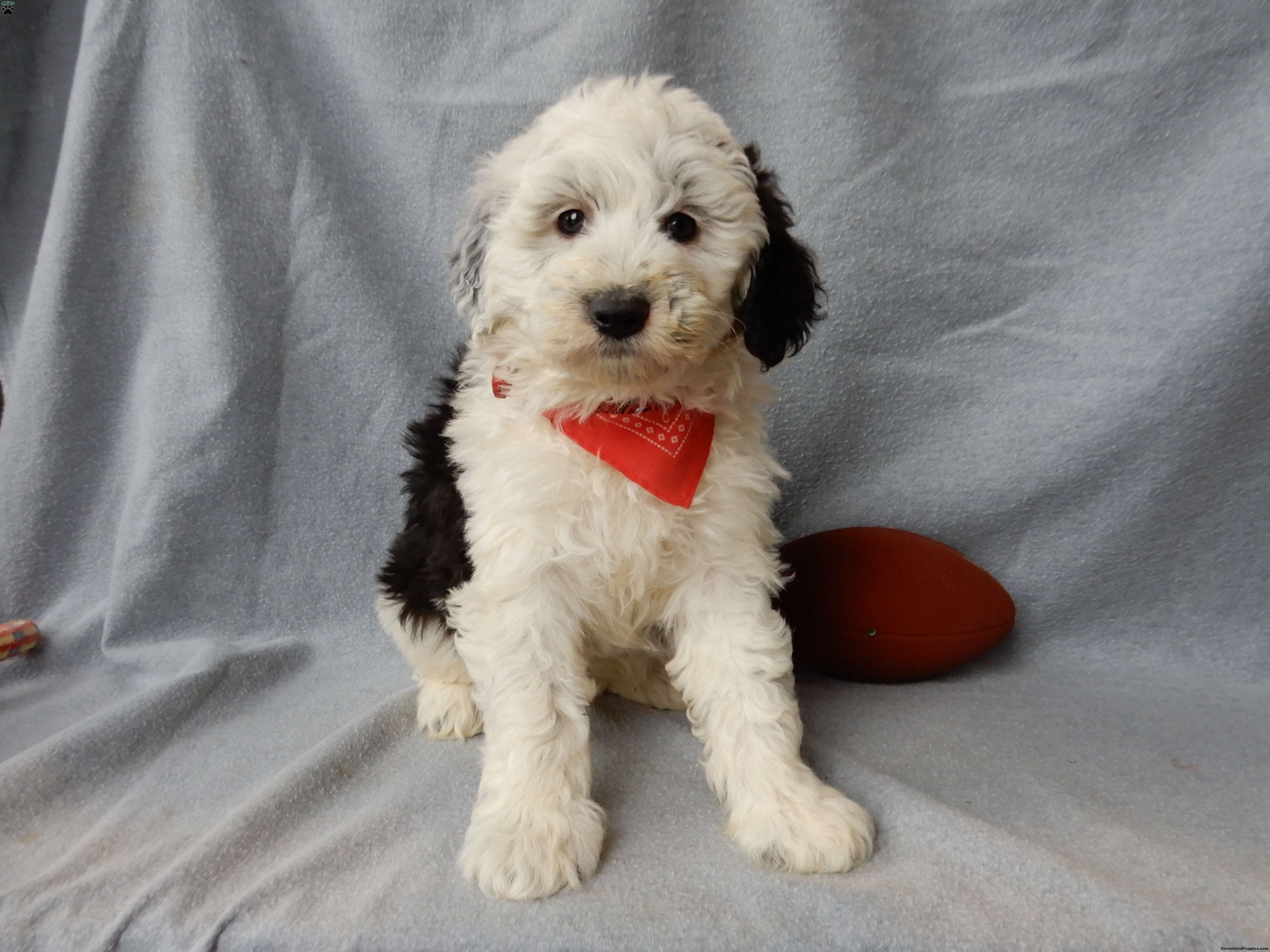 Prepare to fall in love!!! My name is Kenny and I’m a sweet little f1 medium sized sheepadoodle looking for my furever home!! One look into my warm, loving eyes and at my soft, one-of-a-kind black and white coat and I’ll be sure to have grabbed your heart already!  I’m very happy, playful and very kid friendly! I am full of personality, and I give amazing puppy kisses and would love to fill your home with all my puppy love! I have been vet checked head to tail and I am up to date on all vaccinations and dewormings ! I come with a 1 year health guarantee with the option of extending it to a 3 year guarantee! Shipping is available to your door anywhere in the USA! My mother is Nova, an AKC 60#Old English Sheepdog with a heart of gold and my father is Cory, a 14# blue merle mini poodle!!  I will grow to approx. 35-40# and I will be hypoallergenic and nonshedding! !!… Why wait when you know I’m the one for you? Call or text Martha to make me the newest addition to your family and get ready to spend a lifetime of tail wagging fun with me!   (7% sales tax on Ohio transactions)